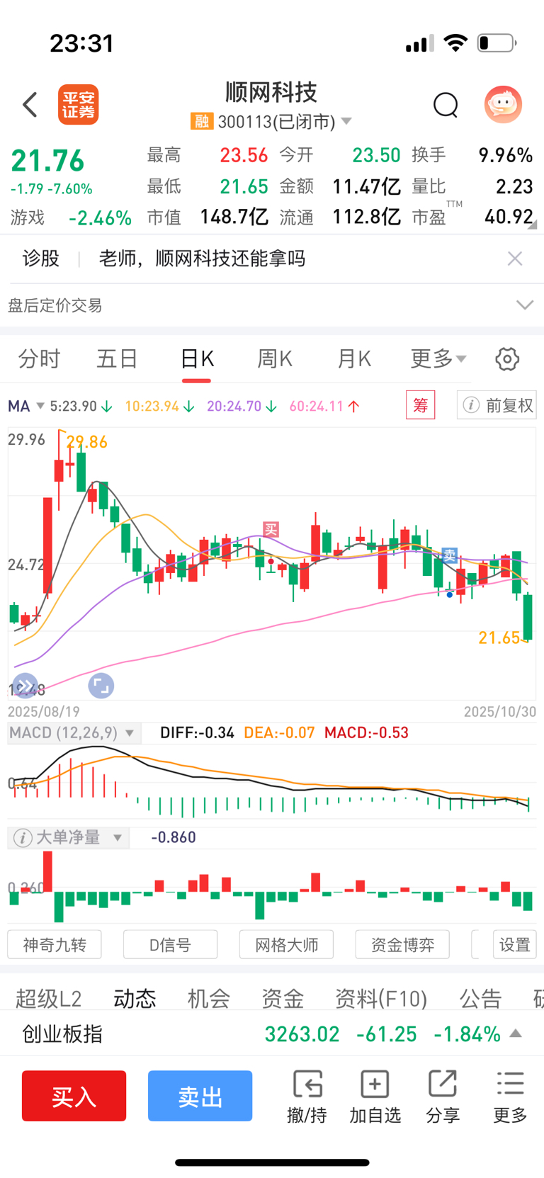 $顺网科技(SZ300113)$ 以为割错了,一卖就啦