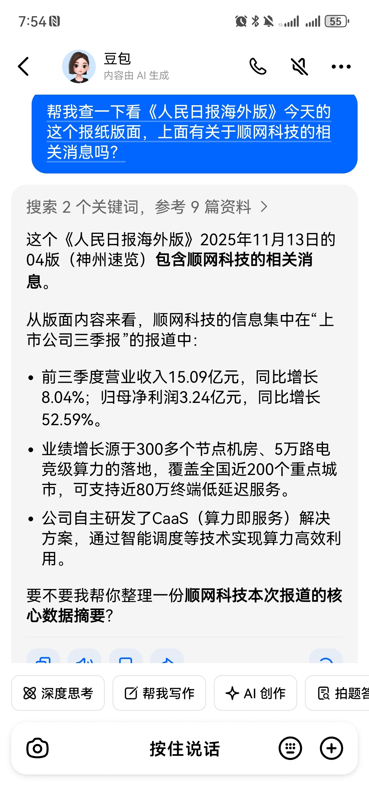 哪位网友还真是消息灵通,人民日报今天确实报道了顺网科技的相关信息