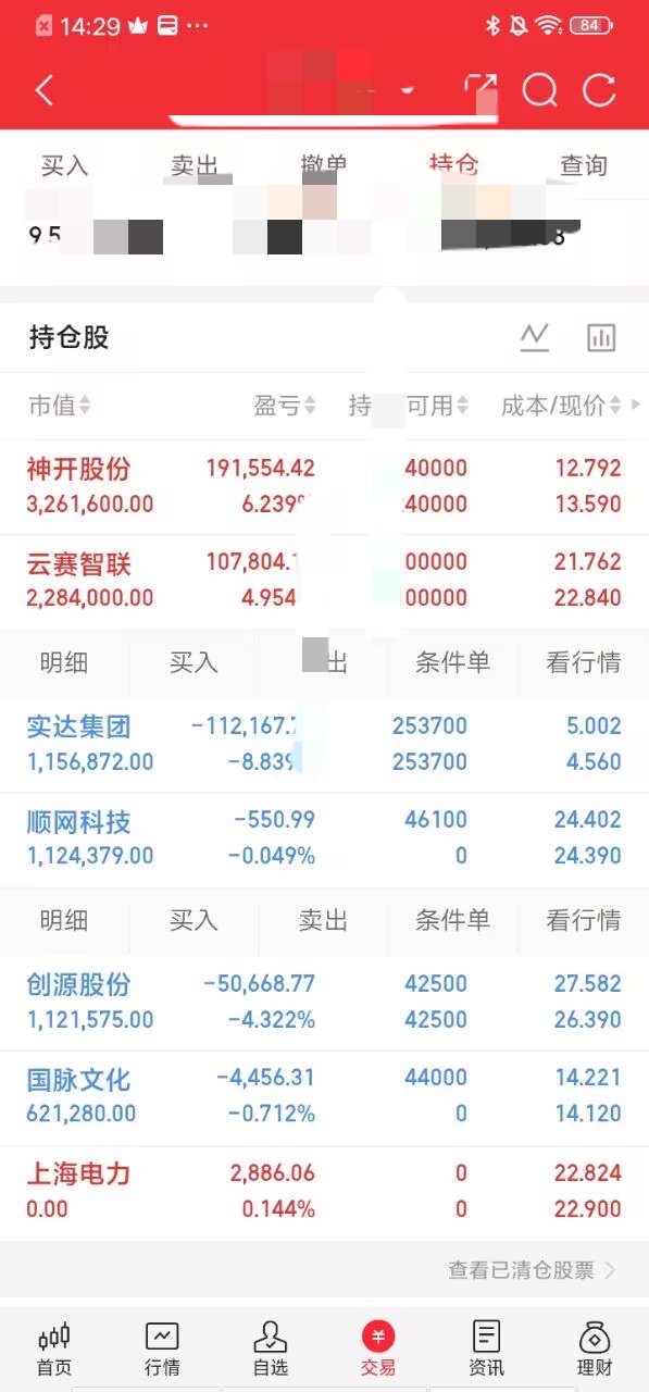 今天买入今天买入出货走人实达集团减半仓创源股份锁仓中神开股份持有云赛智联持有个人