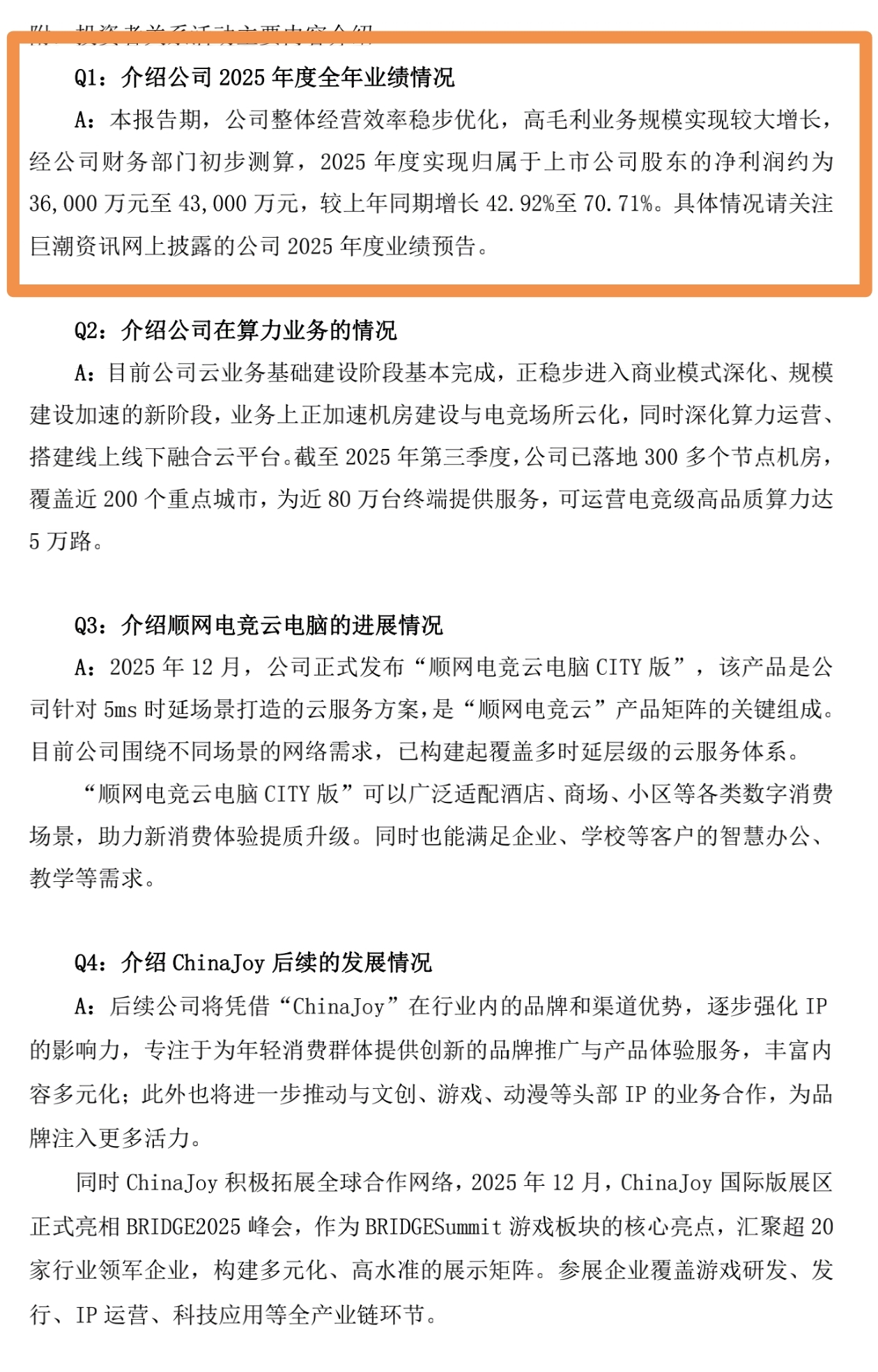 $顺网科技(SZ300113)$ 公司2025年业绩预告大幅增长,利好来了