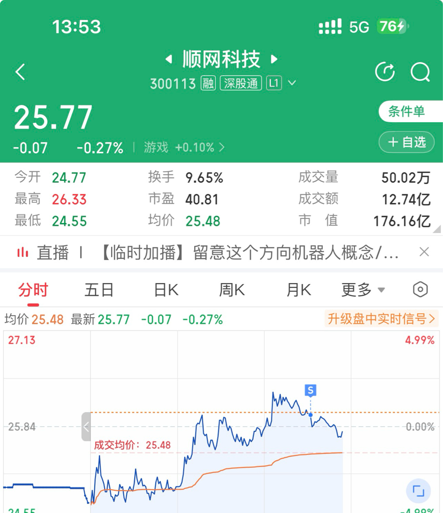$顺网科技(SZ300113)$ 昨天尾盘买的正好回本了,溜了溜了