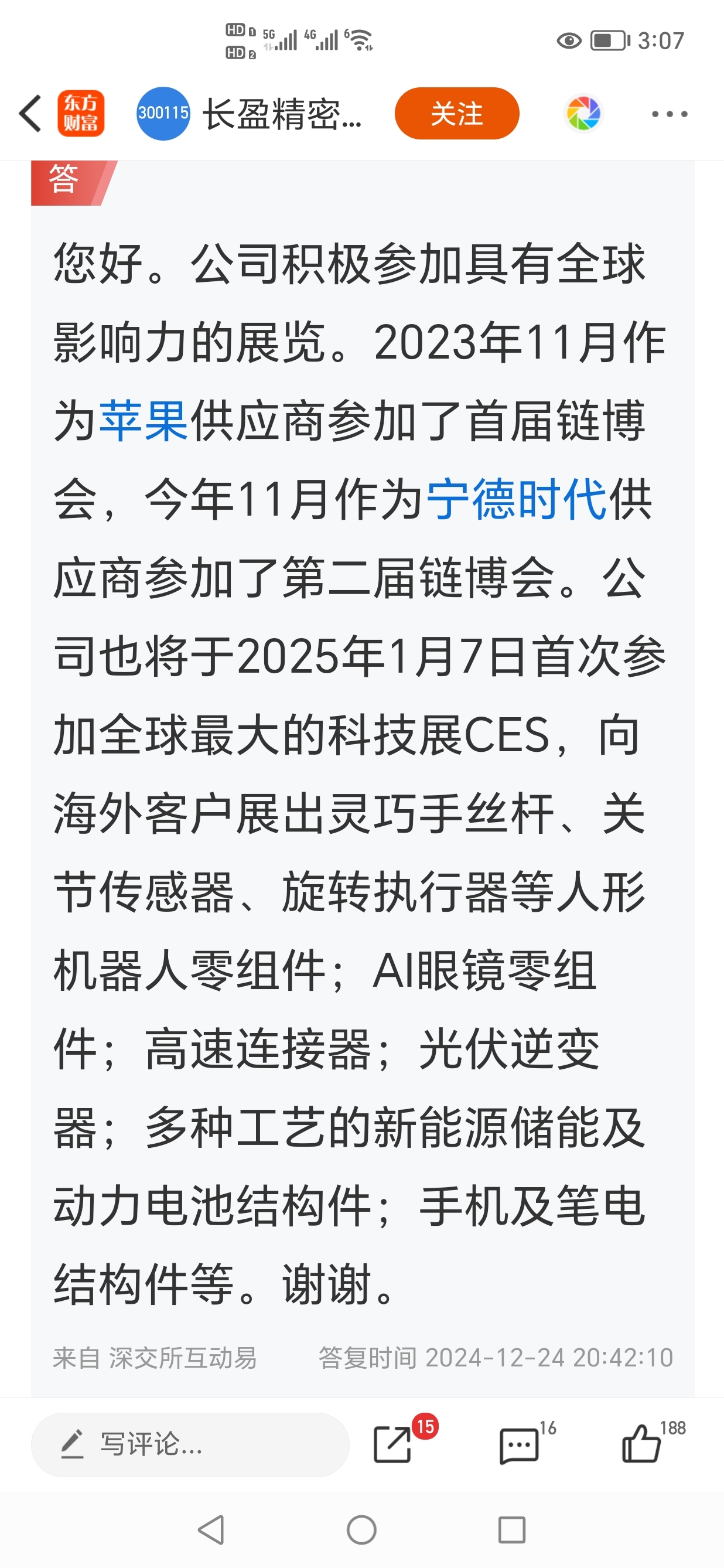 $长盈精密(SZ300115)$