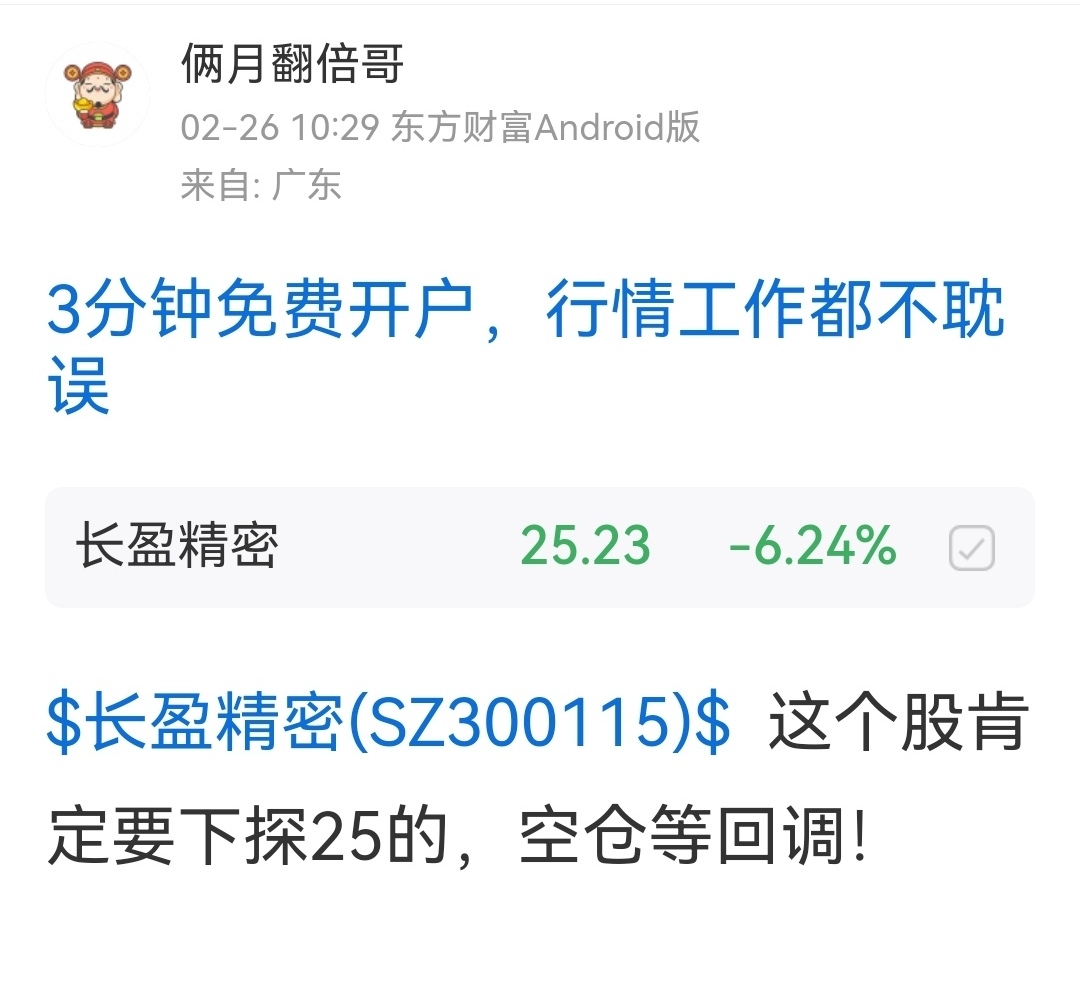 $长盈精密(SZ300115)$ 看懂的都锁定利润了,没看懂我也没办法!还是那句话,钱是自己的,亏了自己疼!