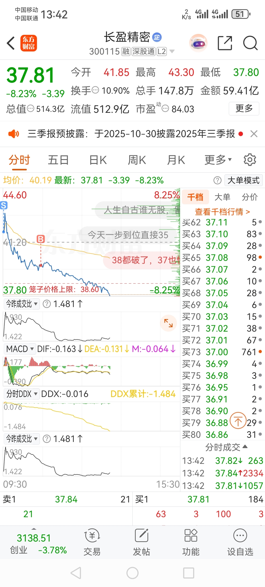 $长盈精密(SZ300115)$ 等待36.66附近再加仓