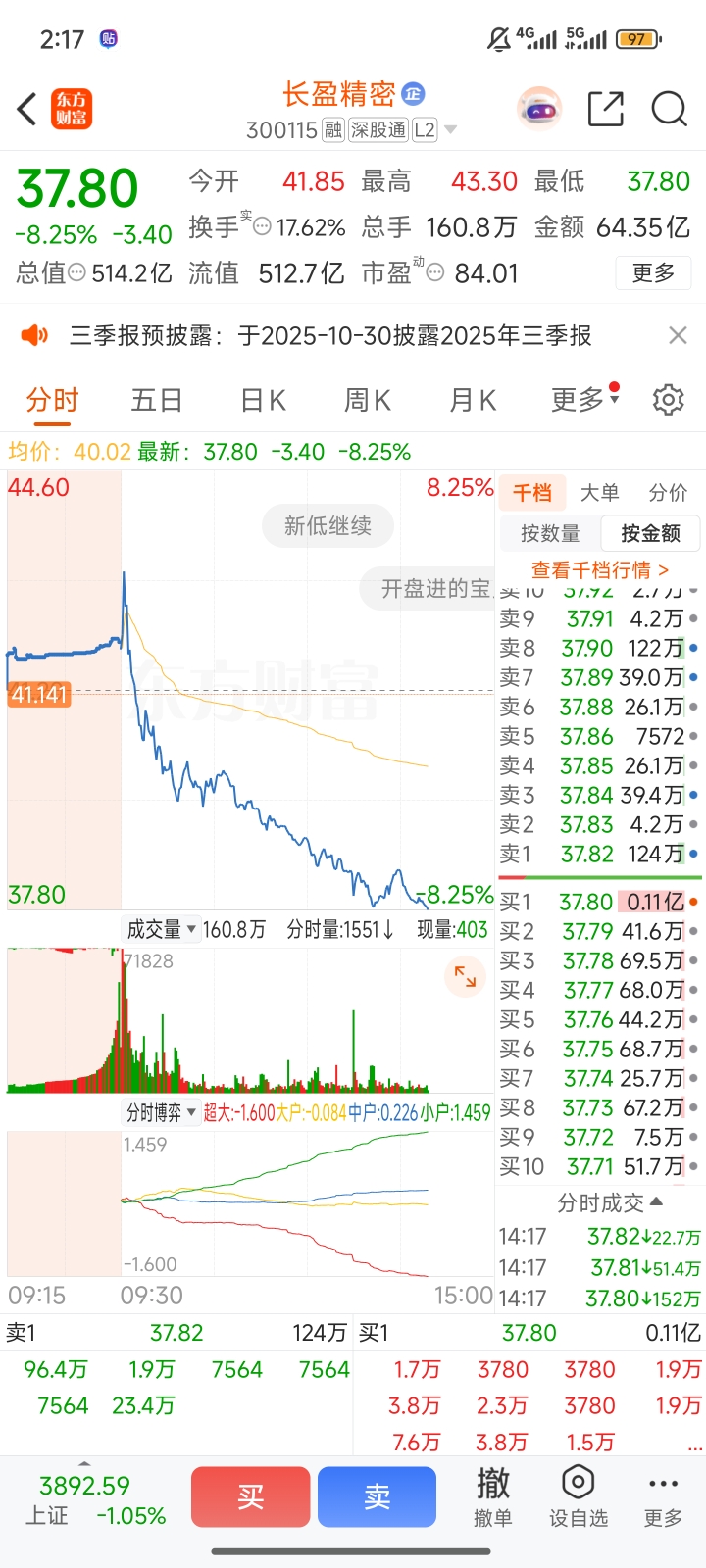 $长盈精密(SZ300115)$ 格局,就是不卖,拿到下周