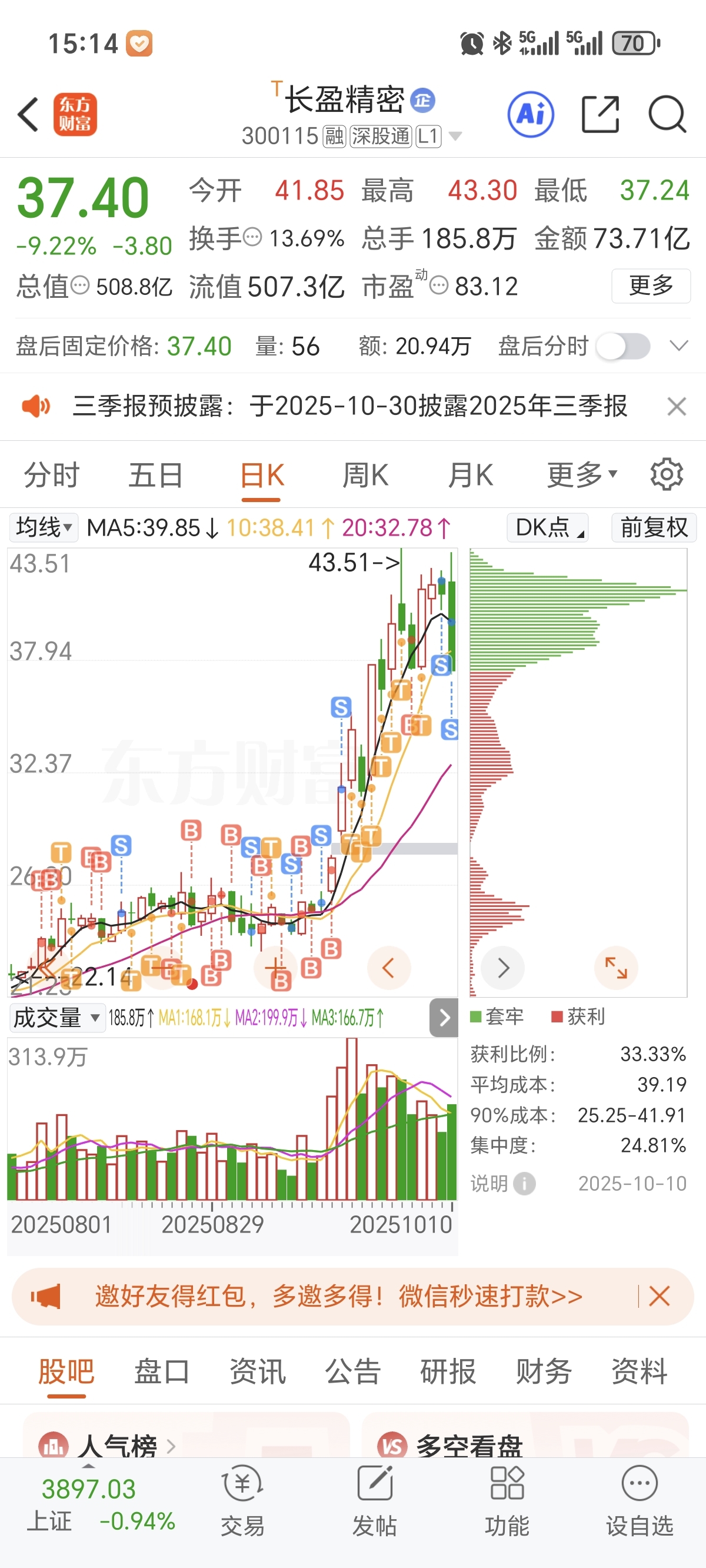 $长盈精密(SZ300115)$ 今天全部清了,谢谢第一只让我翻倍的票,合适机会我还会来的。。。