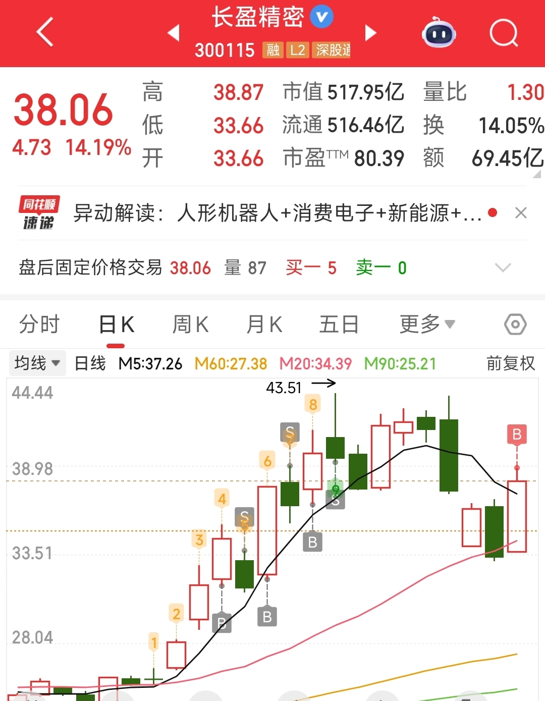 $长盈精密(SZ300115)$ 不能长玩,也不能不玩,心累,不如低位埋伏长线,随便买一只放着也翻倍好几次