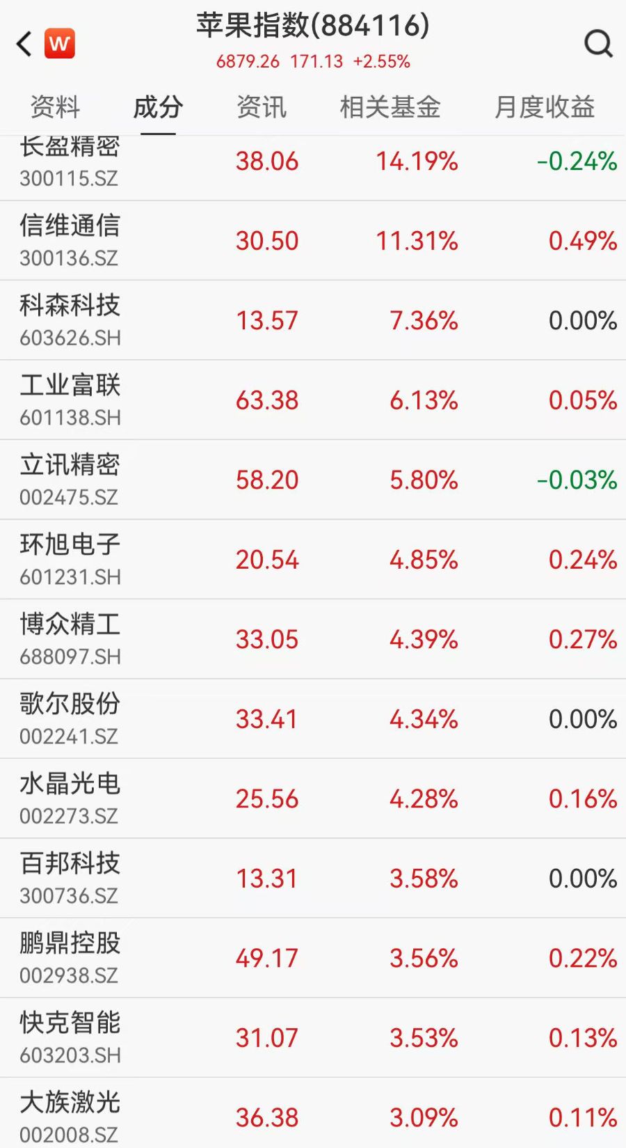 苹果将加大对华投资,概念股集体异动,长盈精密涨超14%