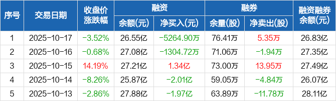长盈精密:融资净偿还5264.9万元,融资余额26.55亿元(10-17)