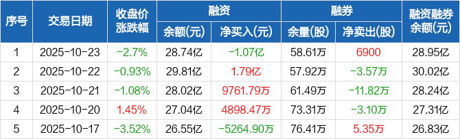 长盈精密:融资净偿还1.07亿元,融资余额28.74亿元(10-23)