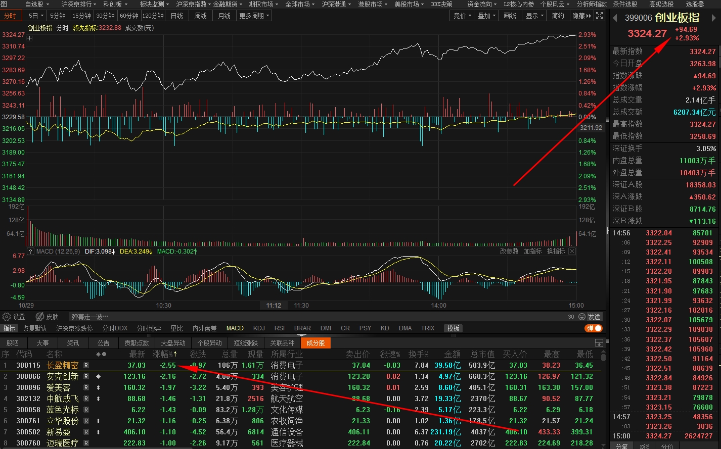 创业板涨2.93%,长盈在里面倒数第一~~~ 也算第一吧。