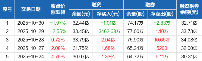 长盈精密:融资净偿还1.01亿元,融资余额32.44亿元(10-30)