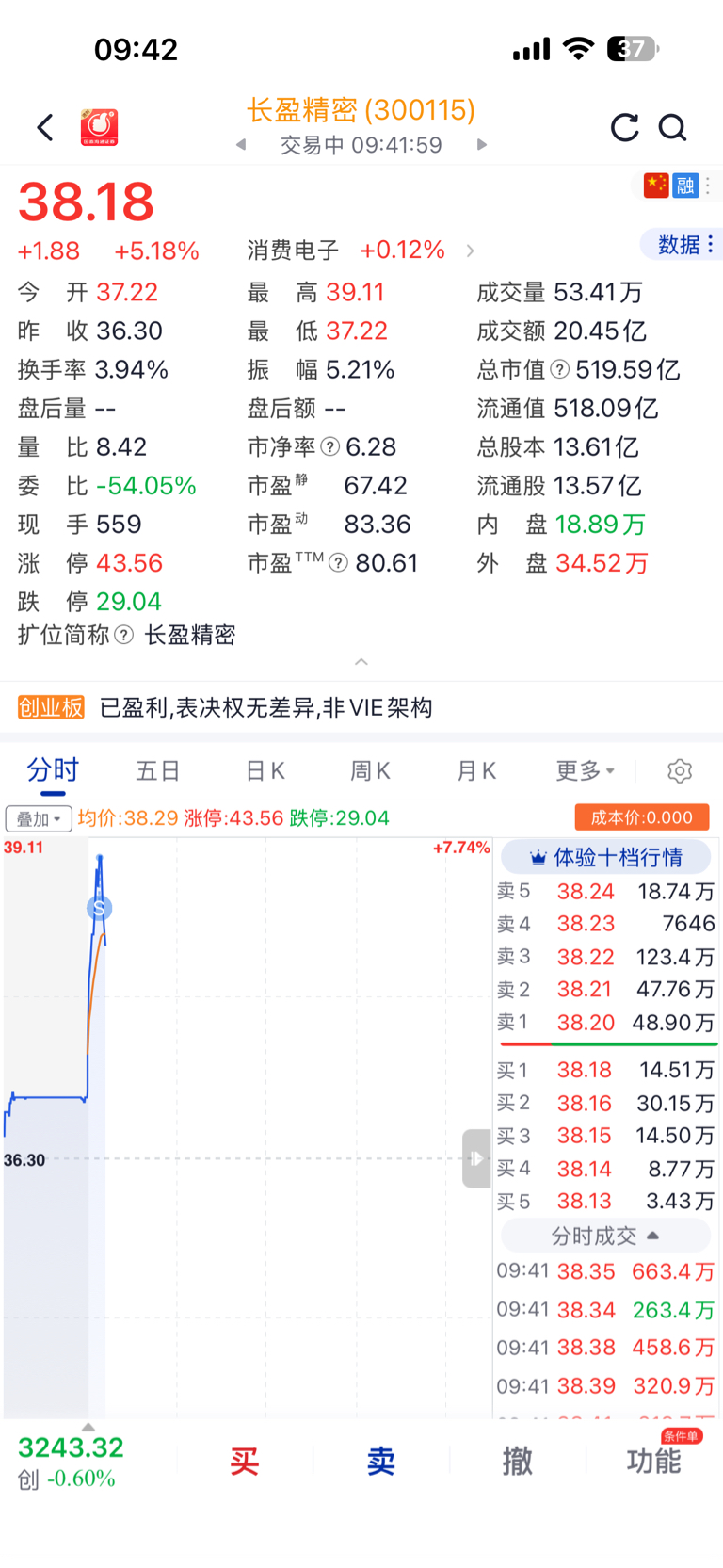$长盈精密(SZ300115)$ 感谢主力,落袋为安