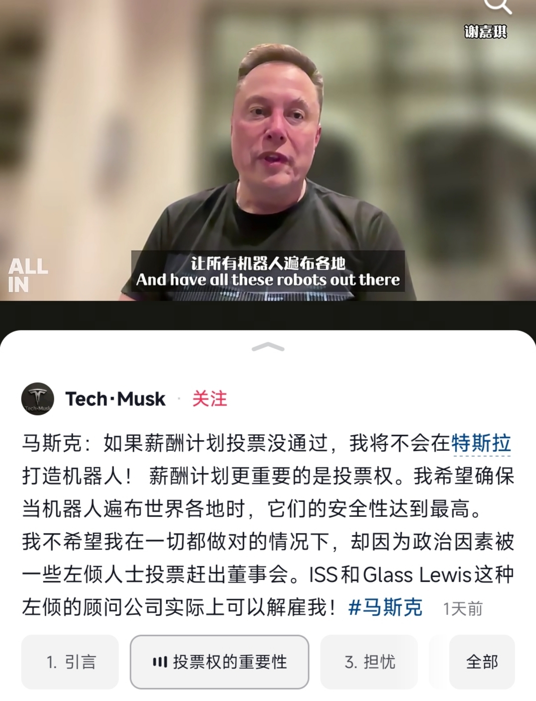 $长盈精密(SZ300115)$ 周四的特斯拉股东大会对长盈精密影响很大,盘后那些媒体把持股1.12%的基金投反对票解读为重大利空,2018年那次马斯克薪酬计划投票,它也投了反对,但有用吗,照样通过,因为起决定性作用的是广大散户,这次也不会例外,散户大概率还是会支持马斯克的