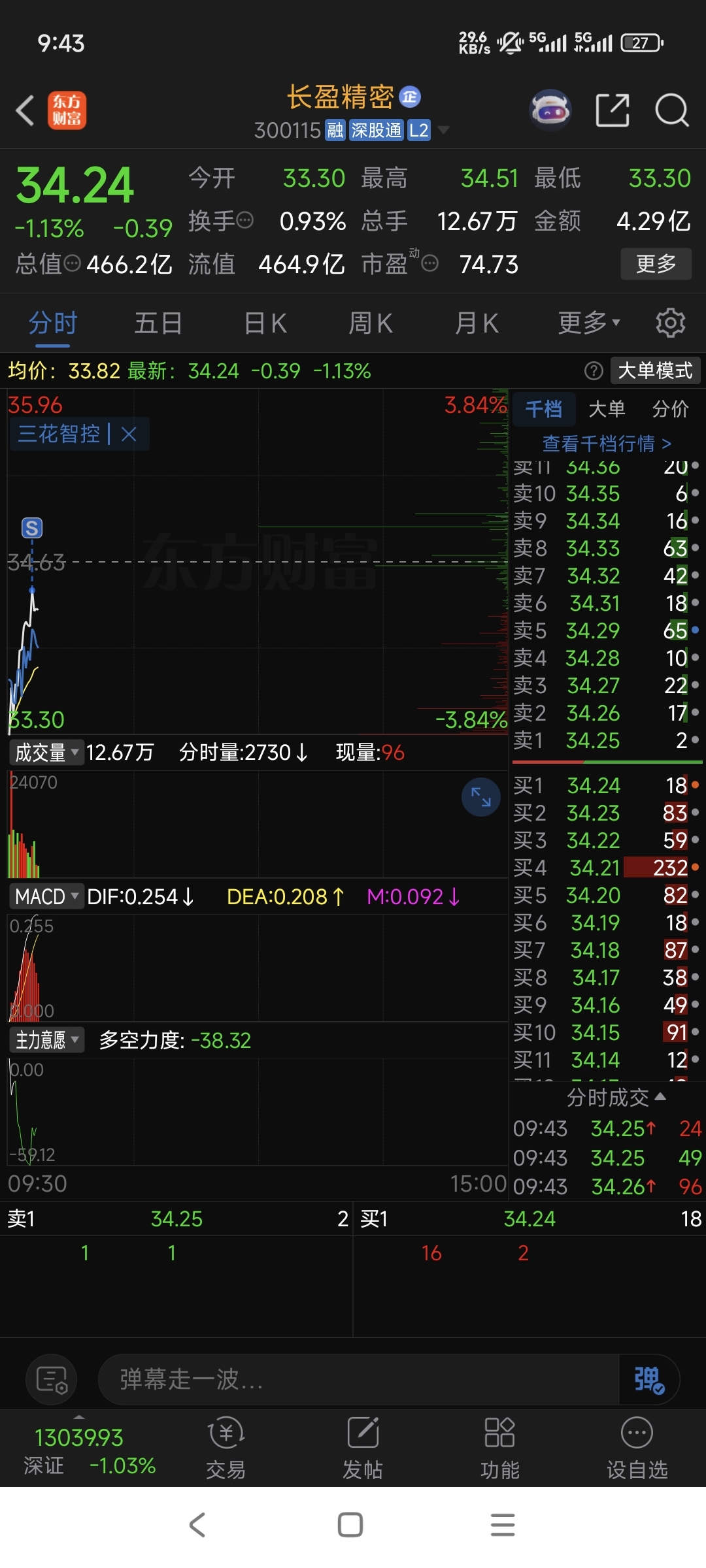 $长盈精密(SZ300115)$ 不和你玩了。气死