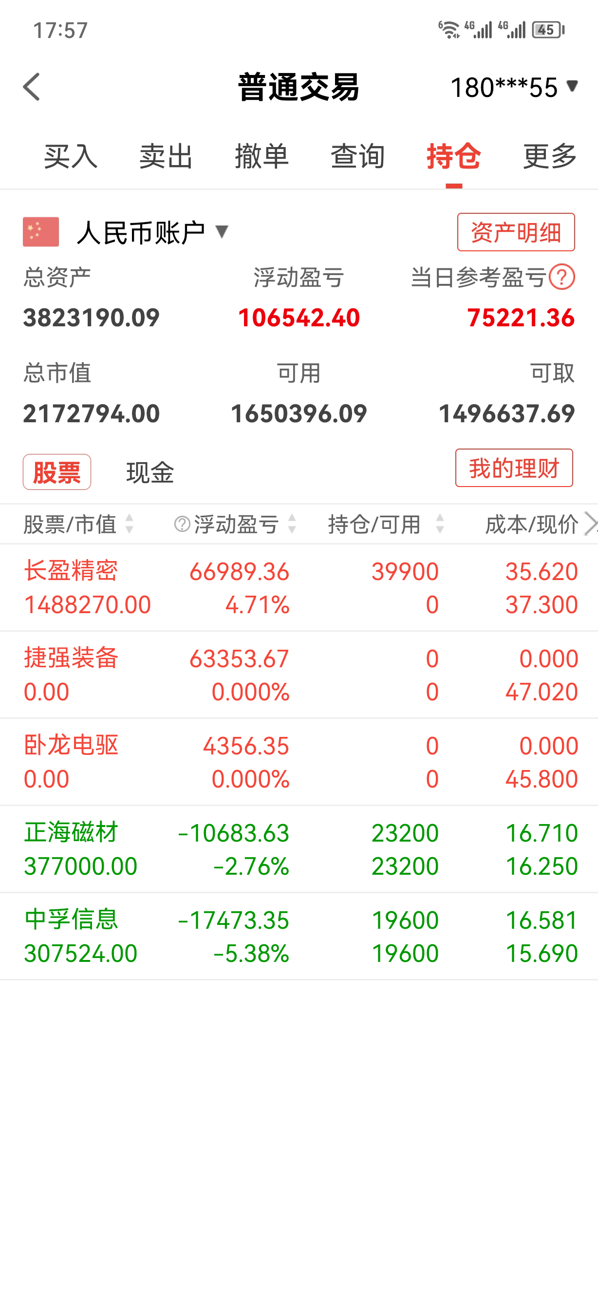 今日早上数据跳动时,微幅的高开给人了很大的悬念。随机微幅震荡走高中,步步一个台阶。小心翼翼、如履薄冰,震荡走高中。截止到 3 点数据停止跳动时,上升了 几乎接近于 1%,又是欣喜若狂的一天。可盈各标情况简单的概括一下。首先,军工类地面兵装2,300875 捷强装备,其从业绩上看是比较差的,市盈率静态和动态都处在亏损中。上涨动能缺乏,在了有一段时间了。早上冲高水面上一点,不恋战了,出来了。电机行业类的嗯600580 卧龙电驱也是在了有一段时间了,曾经一度来来回回的坐电梯,今天看形态上是反包之势,但是依旧不格局了。拿着有点累了,盘中阶梯式走高,午后飞升的过程中不恋战出来了。