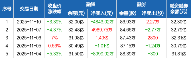 长盈精密:融资净偿还4843.02万元,融资余额32亿元(11-10)