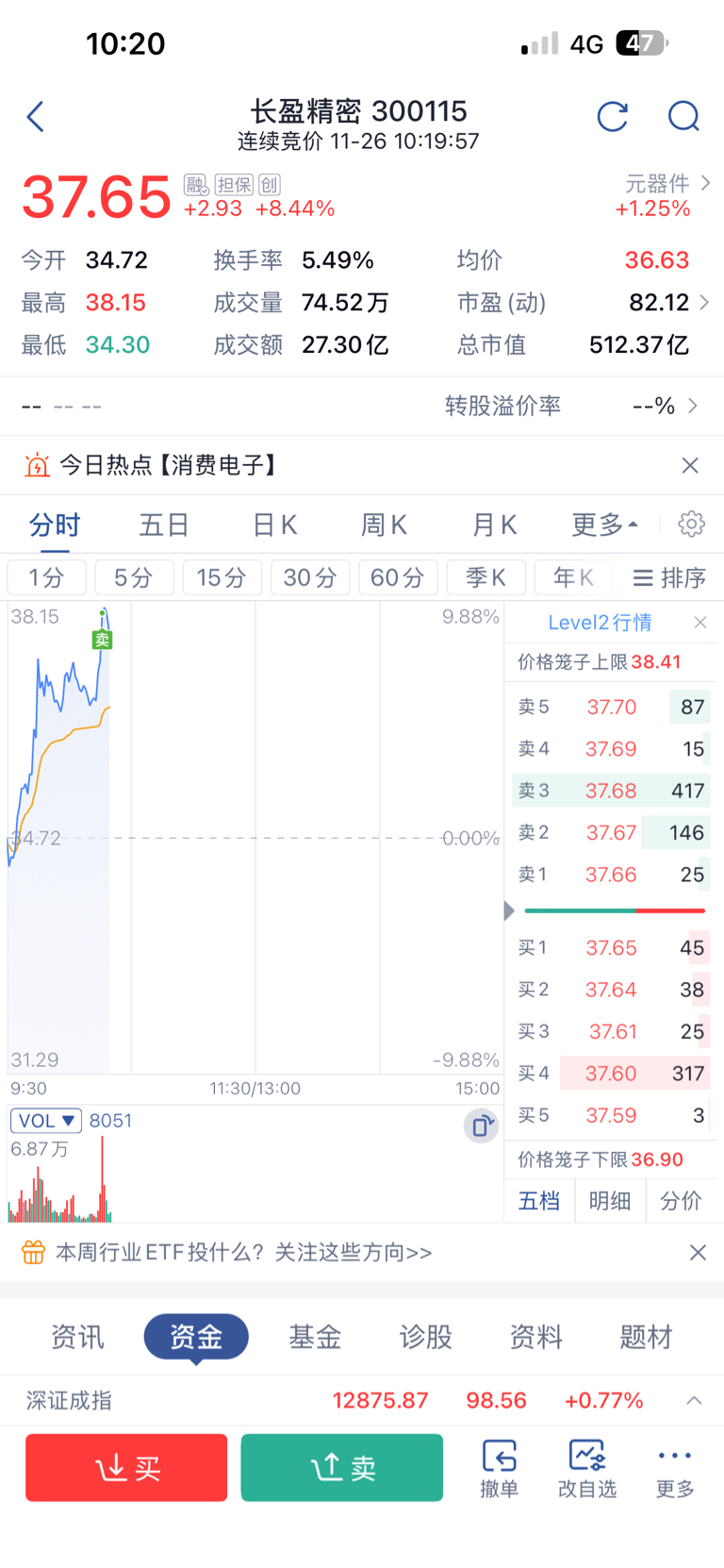 $长盈精密(SZ300115)$ 兄弟们,我卖一半了
