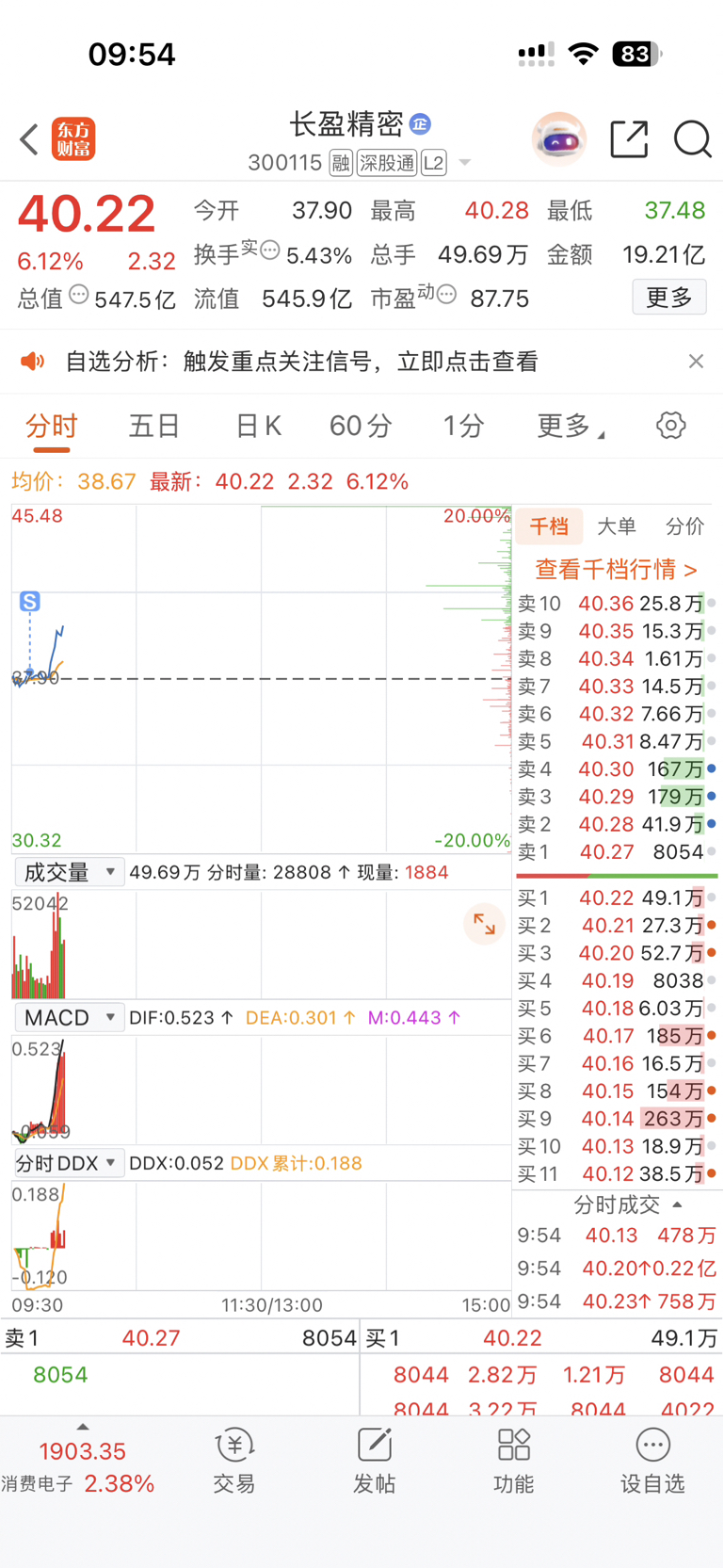 $长盈精密(SZ300115)$ 昨天买入的,走了祝你们发财