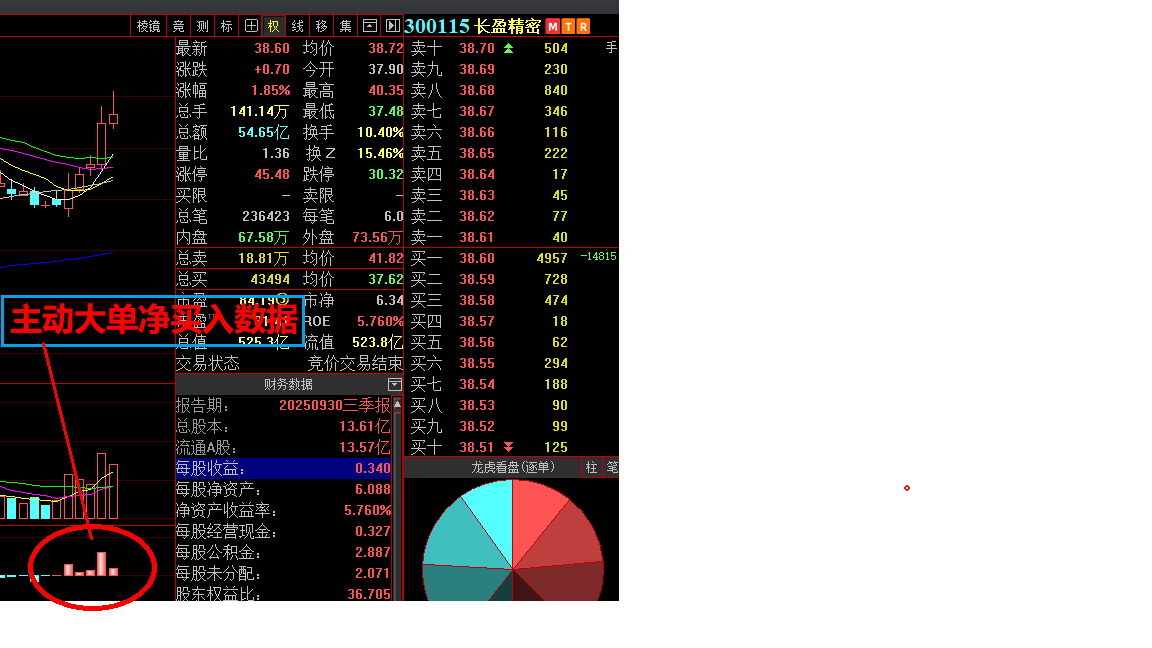 长盈精密截至收盘高精度主动大单净买入数据,从技术角度,股价在短期内能不能大涨,是由主动大单差来决定的,供各位大佬研究。
