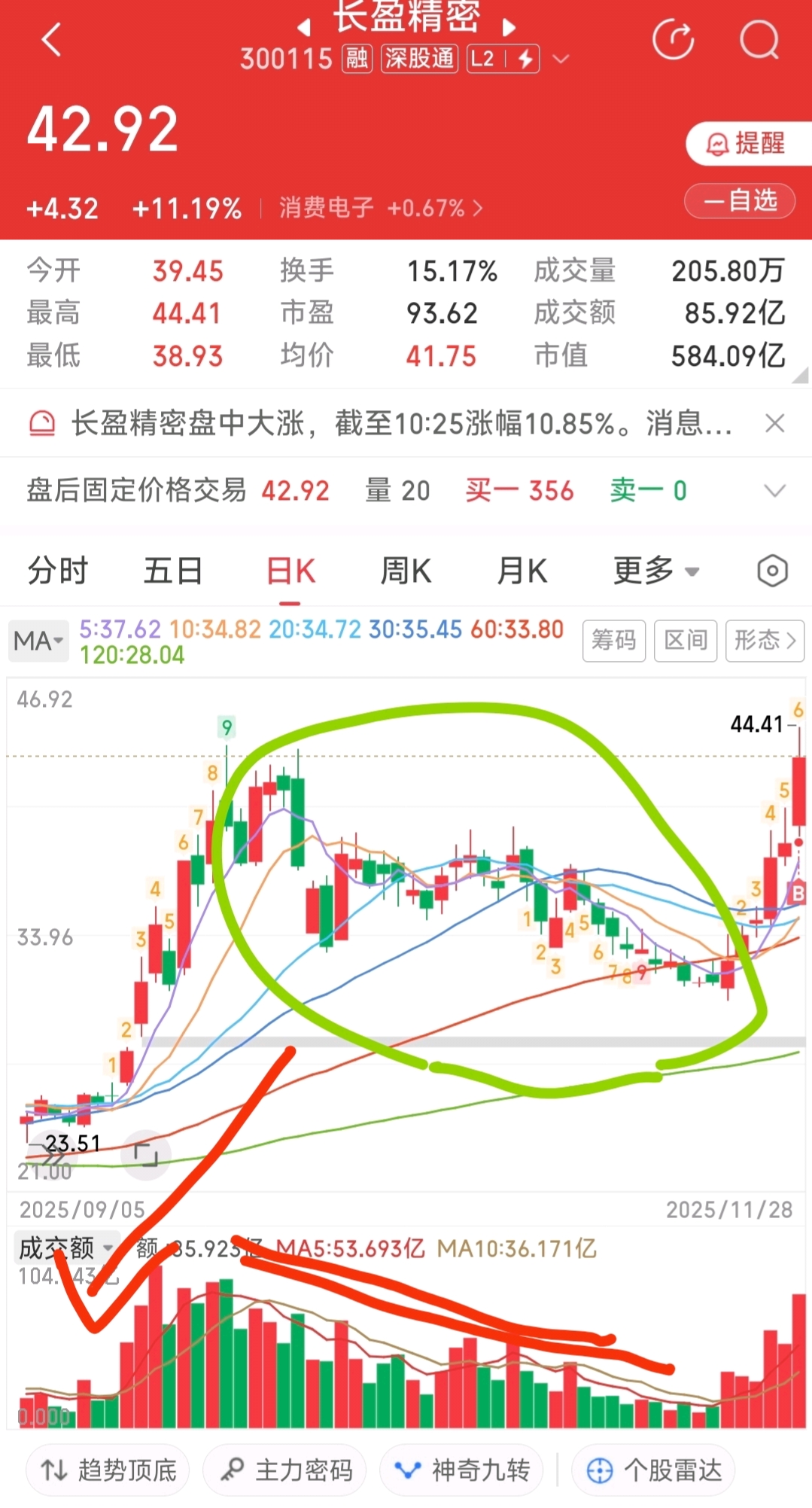 区分阴跌和调整倍量+调整+企稳,可以适当参与没有倍量就还是调整阴跌,天阳为例如果