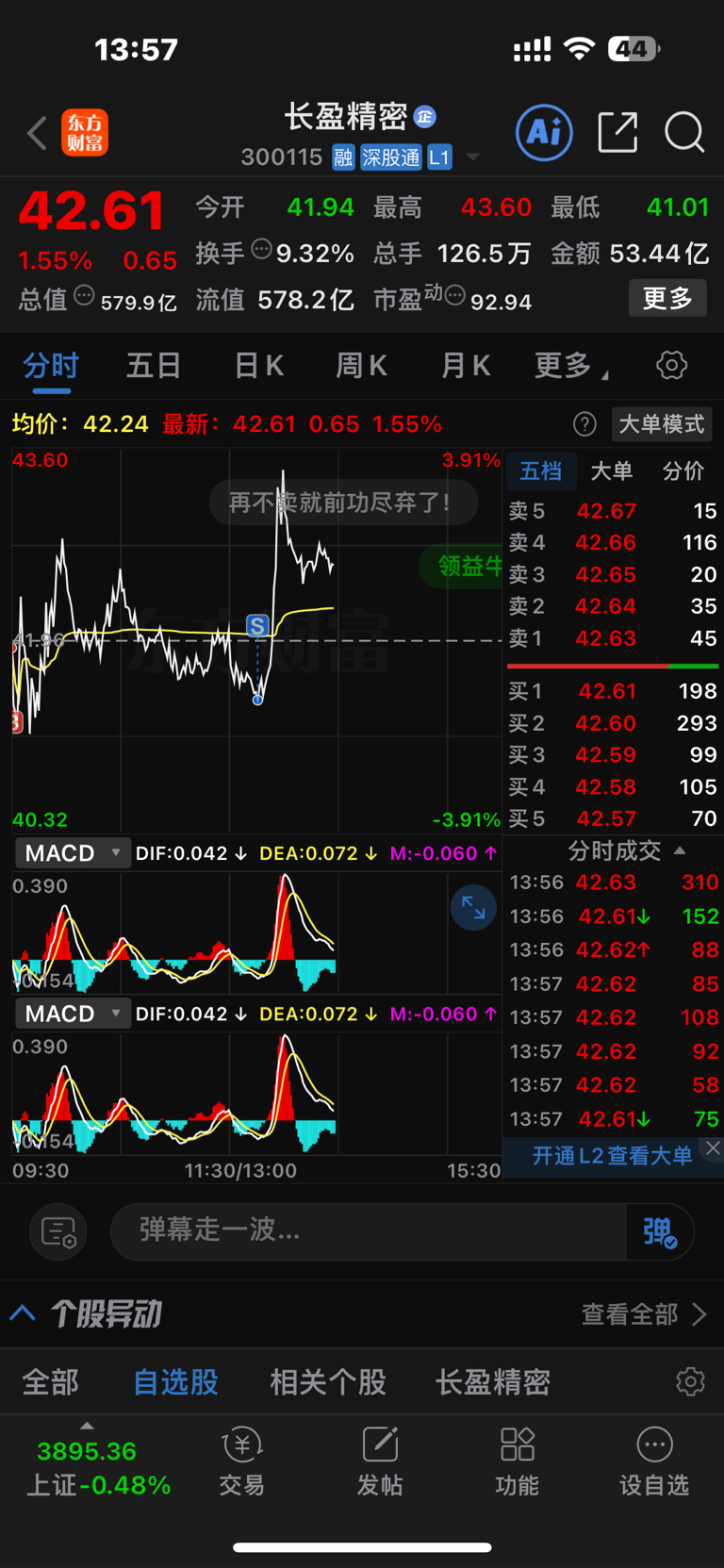 $长盈精密(SZ300115)$ 唉,一卖就涨