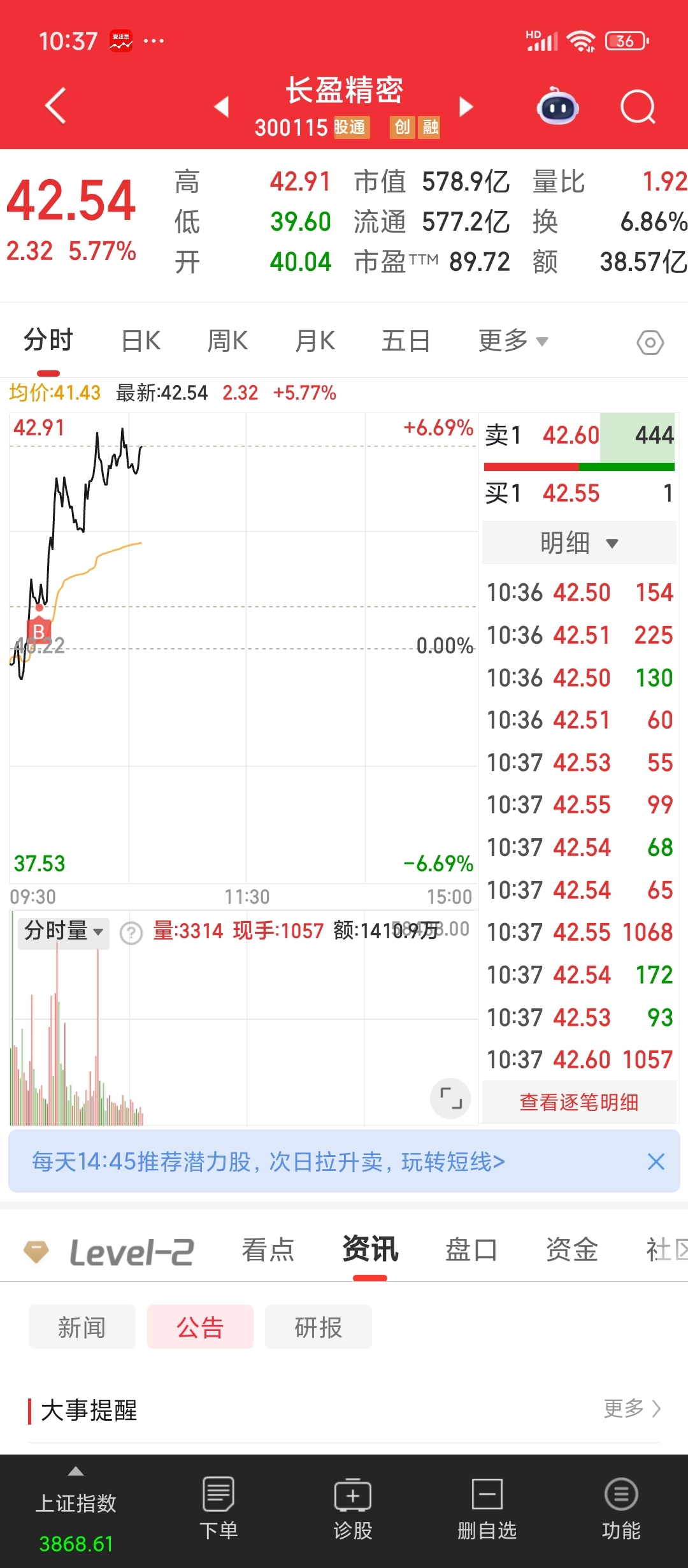300115长盈精密$长盈精密(SZ300115)$ 快6个点了,300058蓝色光标$蓝色光标(SZ300058)$ 也起来!