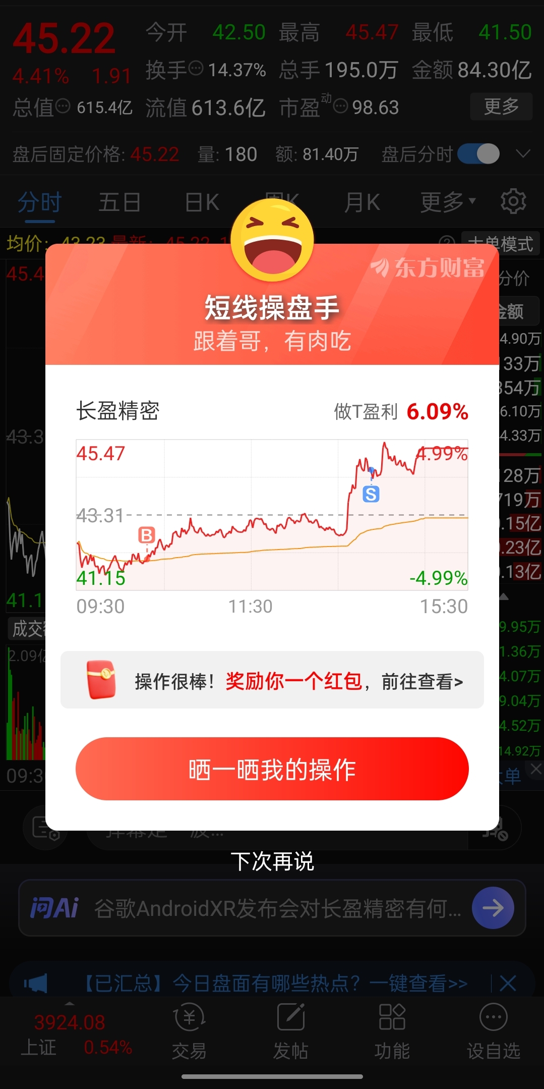 $长盈精密(SZ300115)$ 拿了三天,哈哈