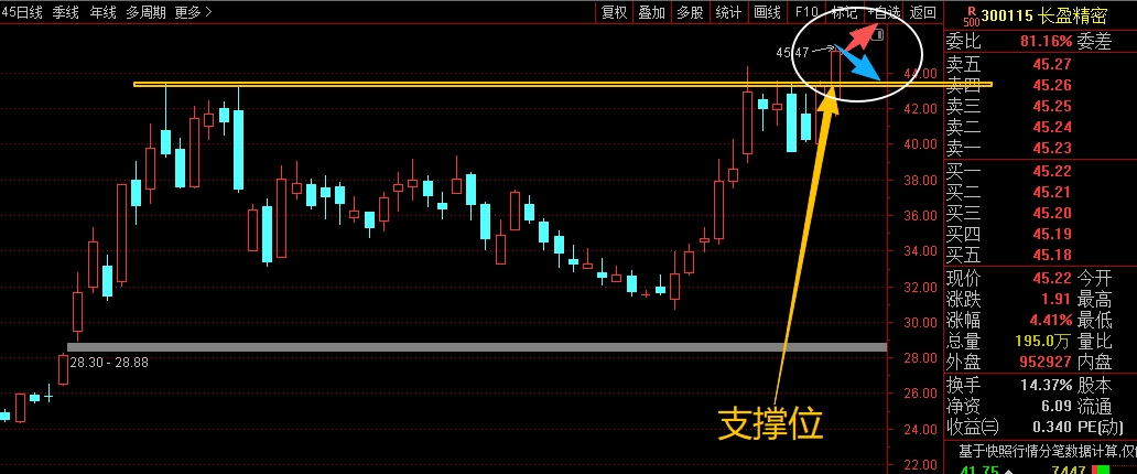 $长盈精密(SZ300115)$ 这两天拉升后,再次新高,比较强势,那接下来就很好判断了,重点看前期高点43.3附近作为支撑,回落只要不跌破,问题就不大,继续震荡看涨,但有效跌破就要注意回落风险了,需要控制仓位应对。#收盘点评# #复盘记录#