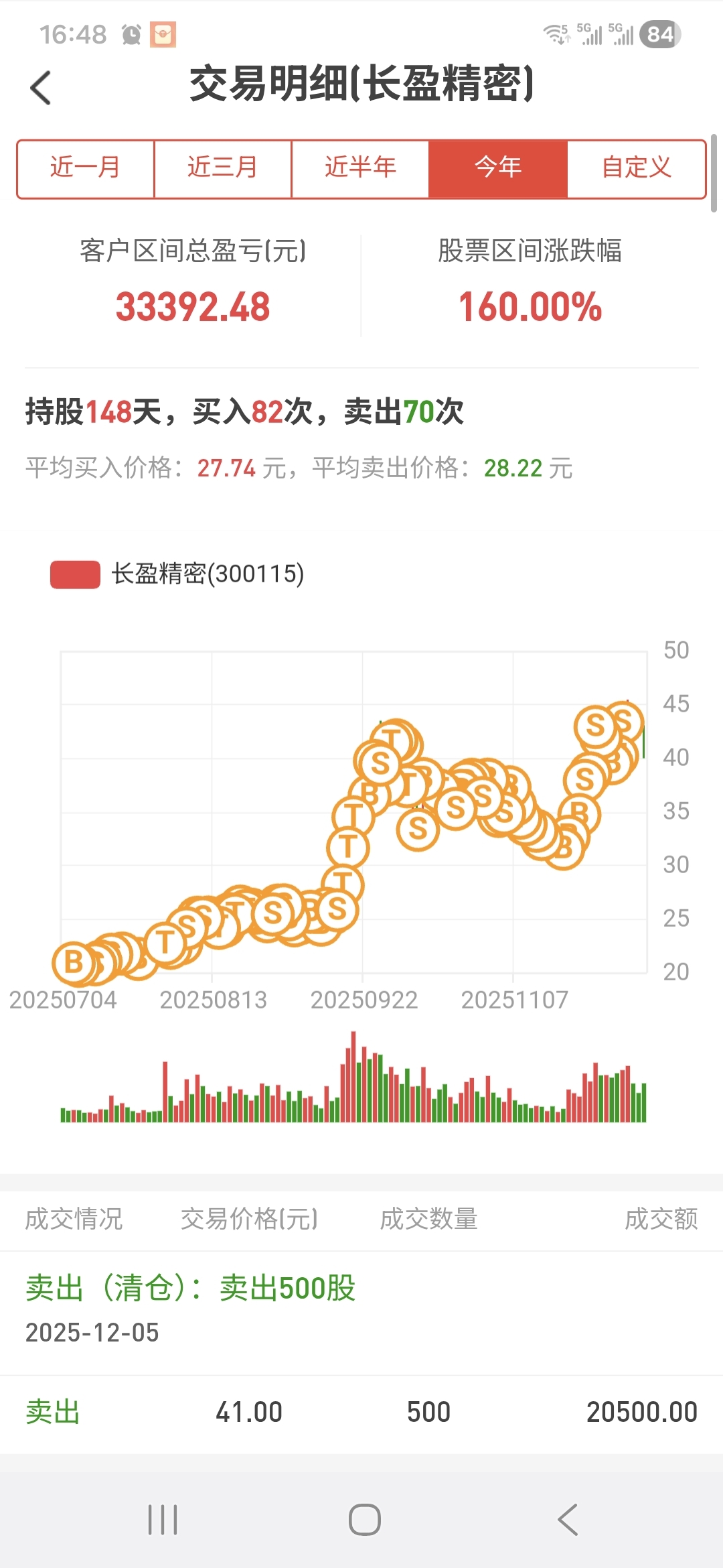 5号那天,以41块清仓长盈,少赚了一点,但炒股永远不能卖在最高点是必然的,现在看