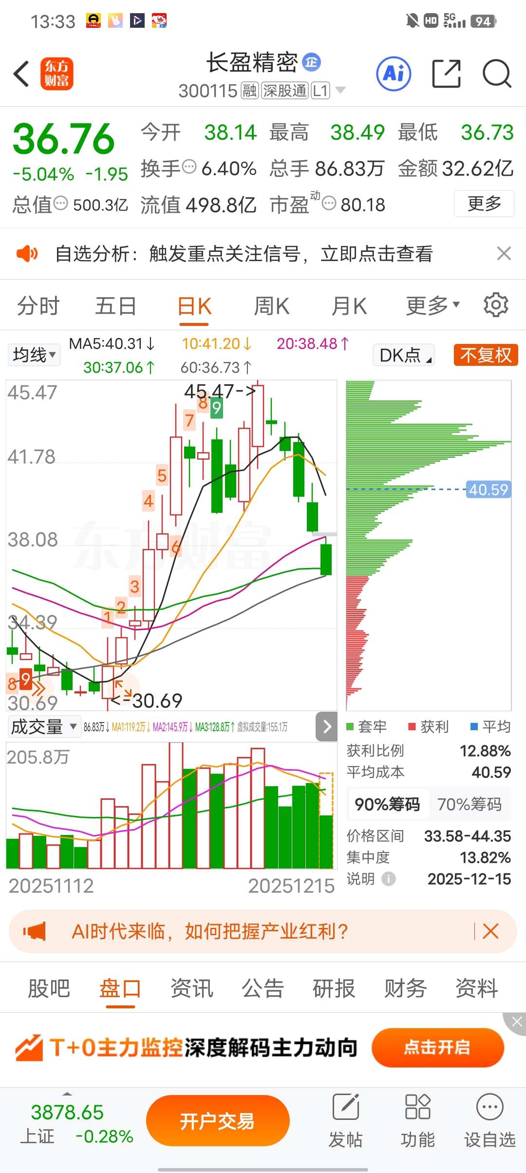 $长盈精密(SZ300115)$ 全是套牢盘!