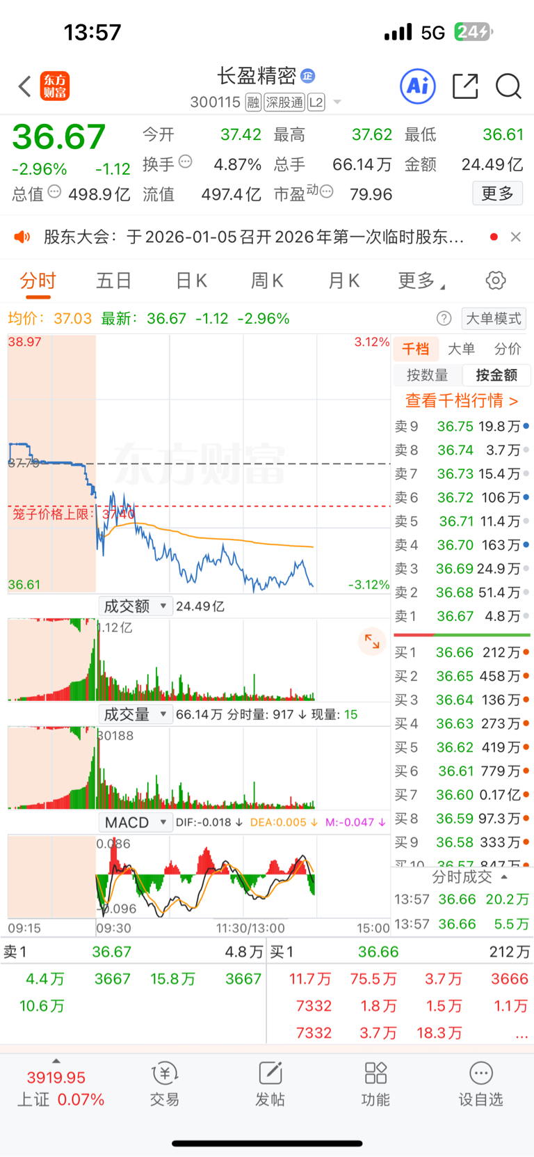 $长盈精密(SZ300115)$ 长盈今天还是弱了,板块里面跌的比较多了,还有2个点的利润,我随时准备走,大家注意