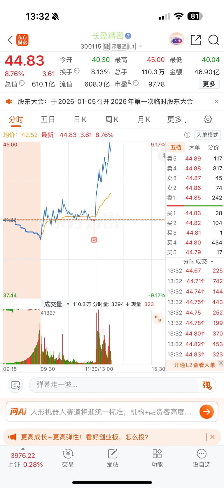 $长盈精密(SZ300115)$ 明天难受了