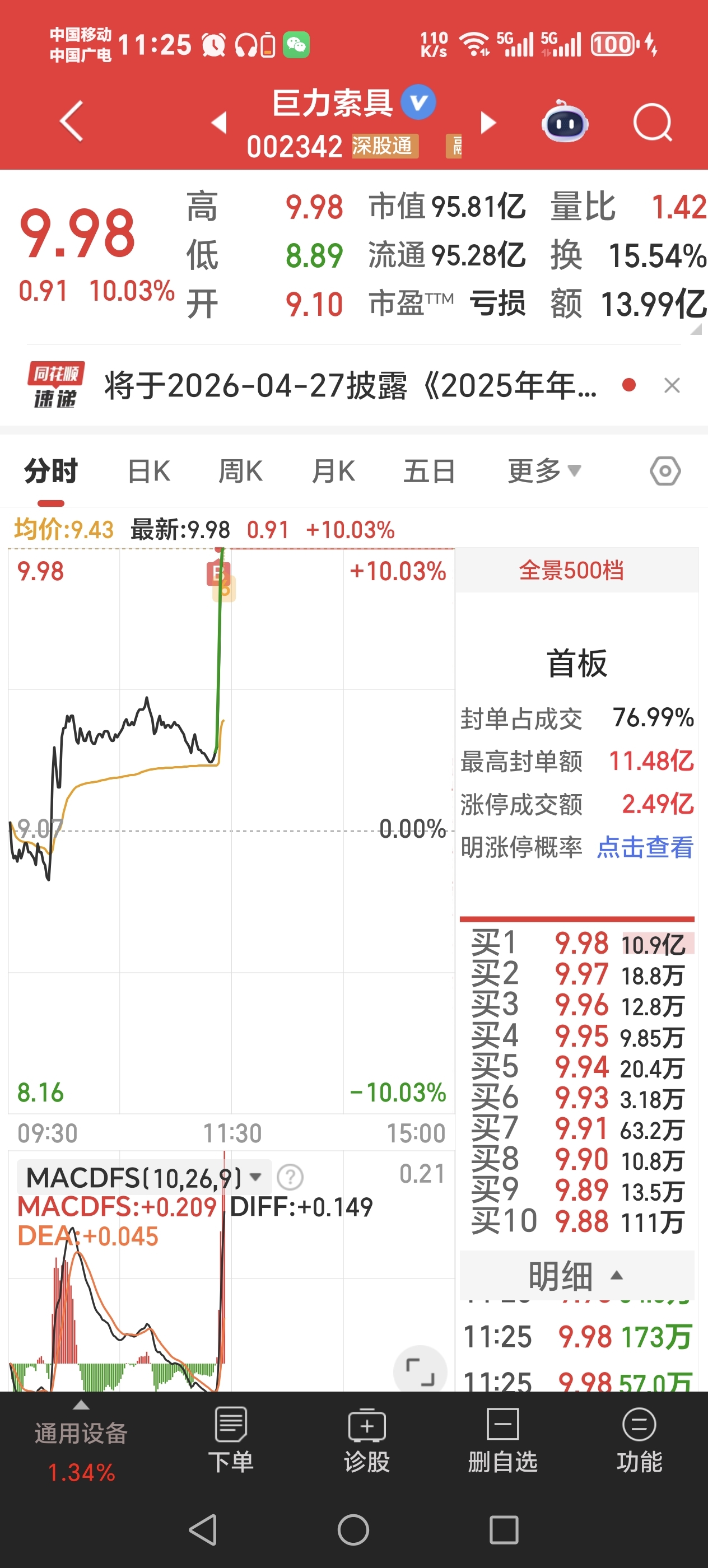 $长盈精密(SZ300115)$ 兄弟们,明天会不会一字板???$巨力索具(SZ002342)$
