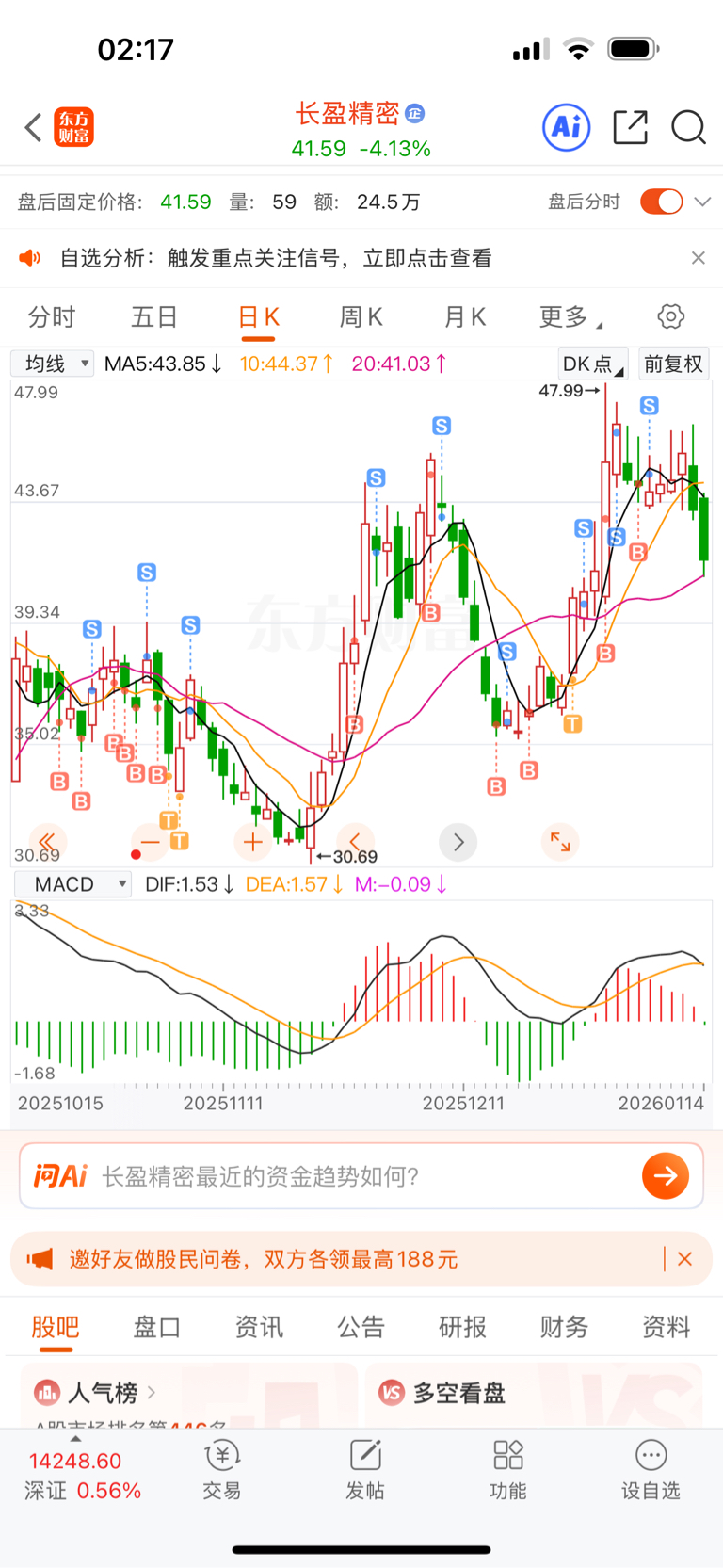 $长盈精密(SZ300115)$ 明天如果不能红盘,这个股近期没戏。去留看明天