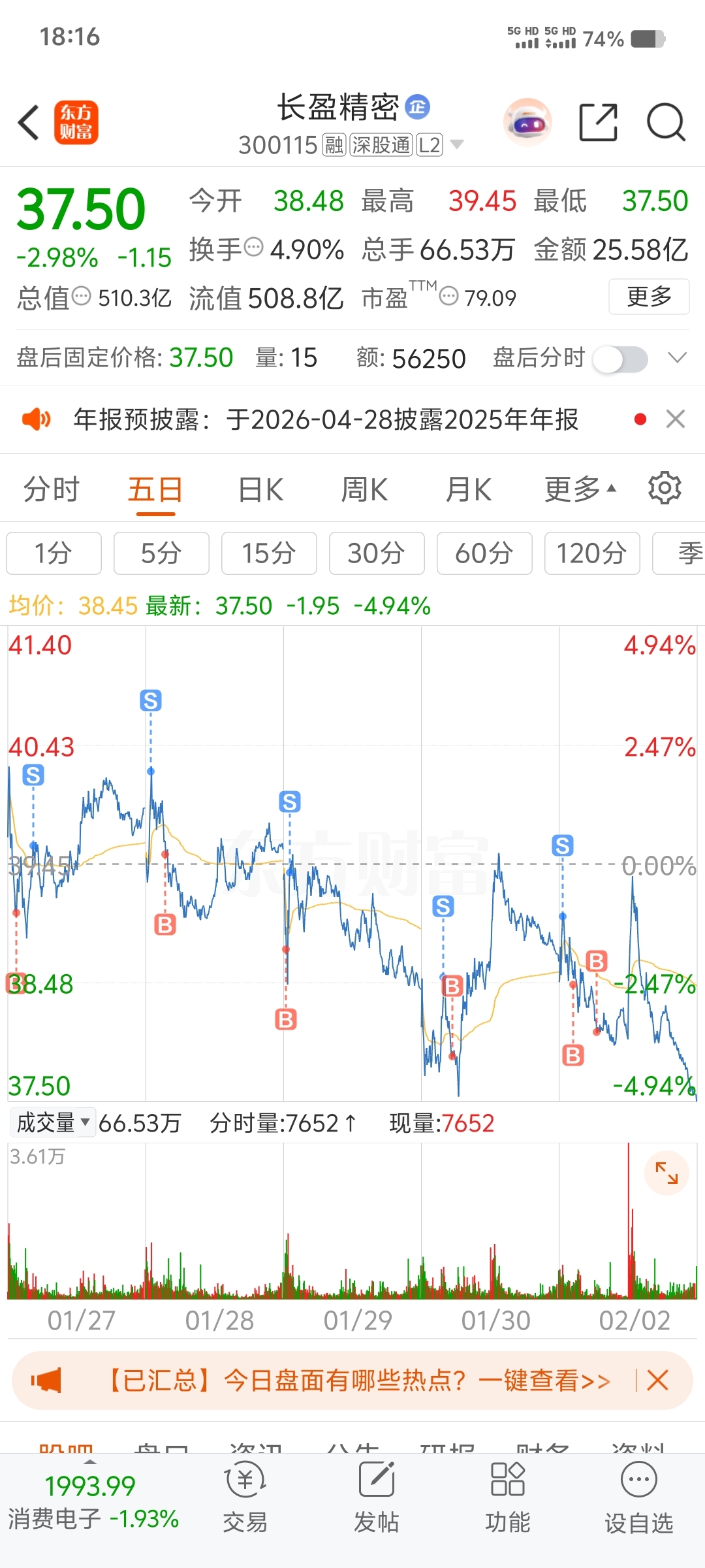 $长盈精密(SZ300115)$ 今天多加了十手,把成本做高了六毛