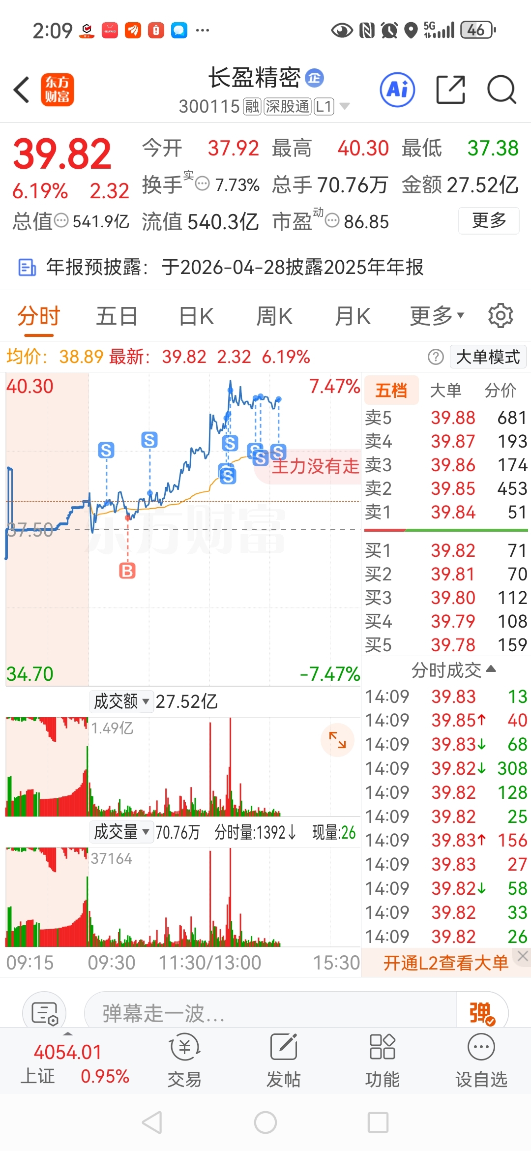 $长盈精密(SZ300115)$ 下来吧哥!让我买买回来吧