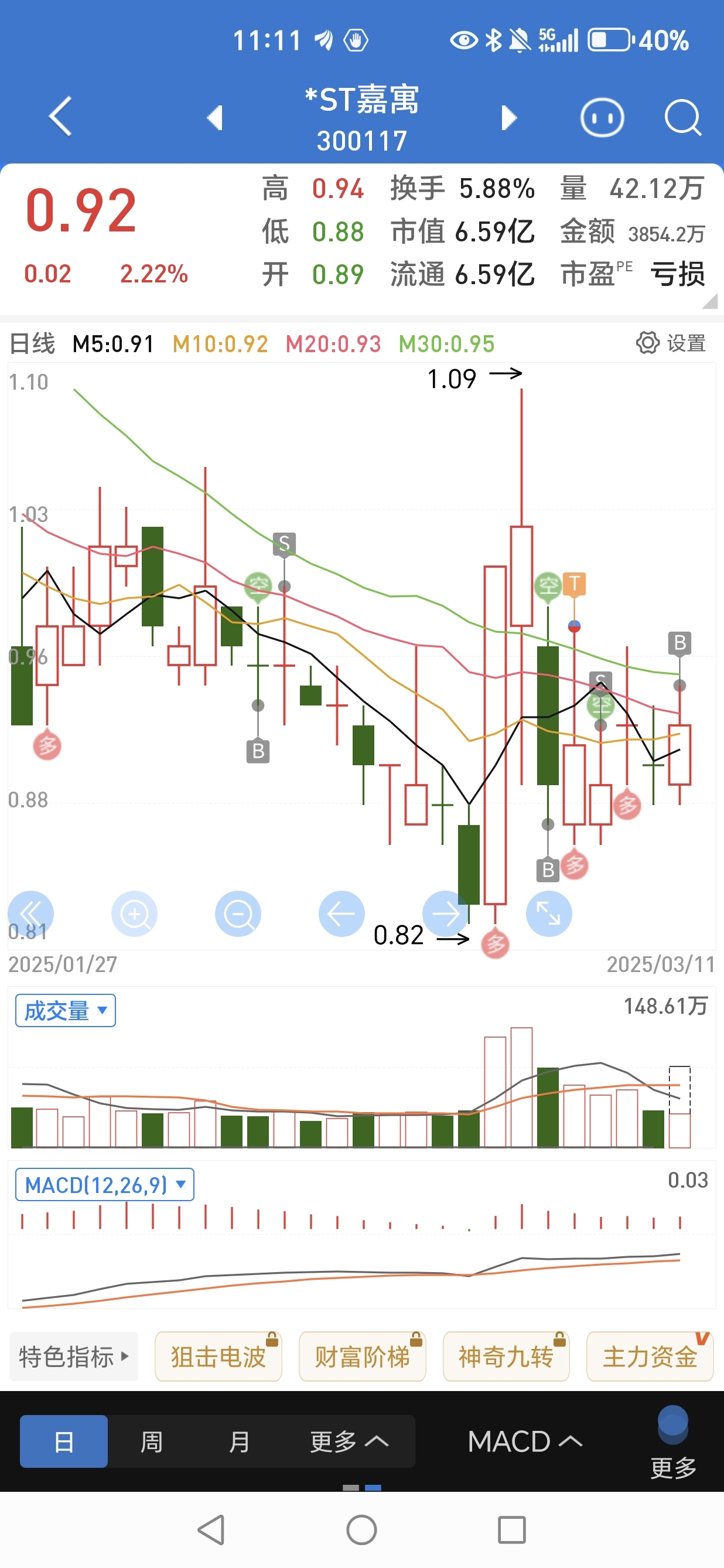 $*ST嘉寓(SZ300117)$ 0.92买一点,明天跑路,不想追吉药