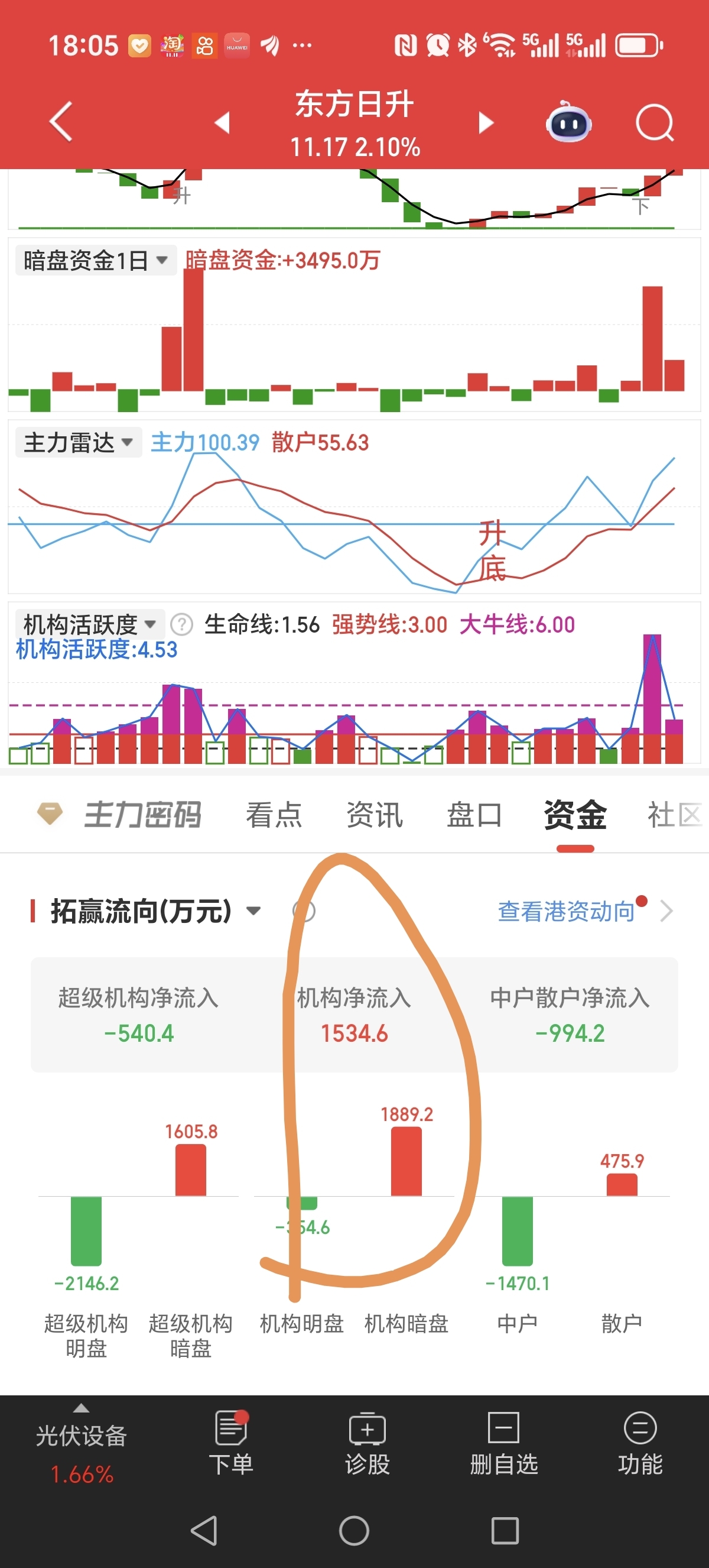 $东方日升(SZ300118)$ 暗盘资金流入,明早入你