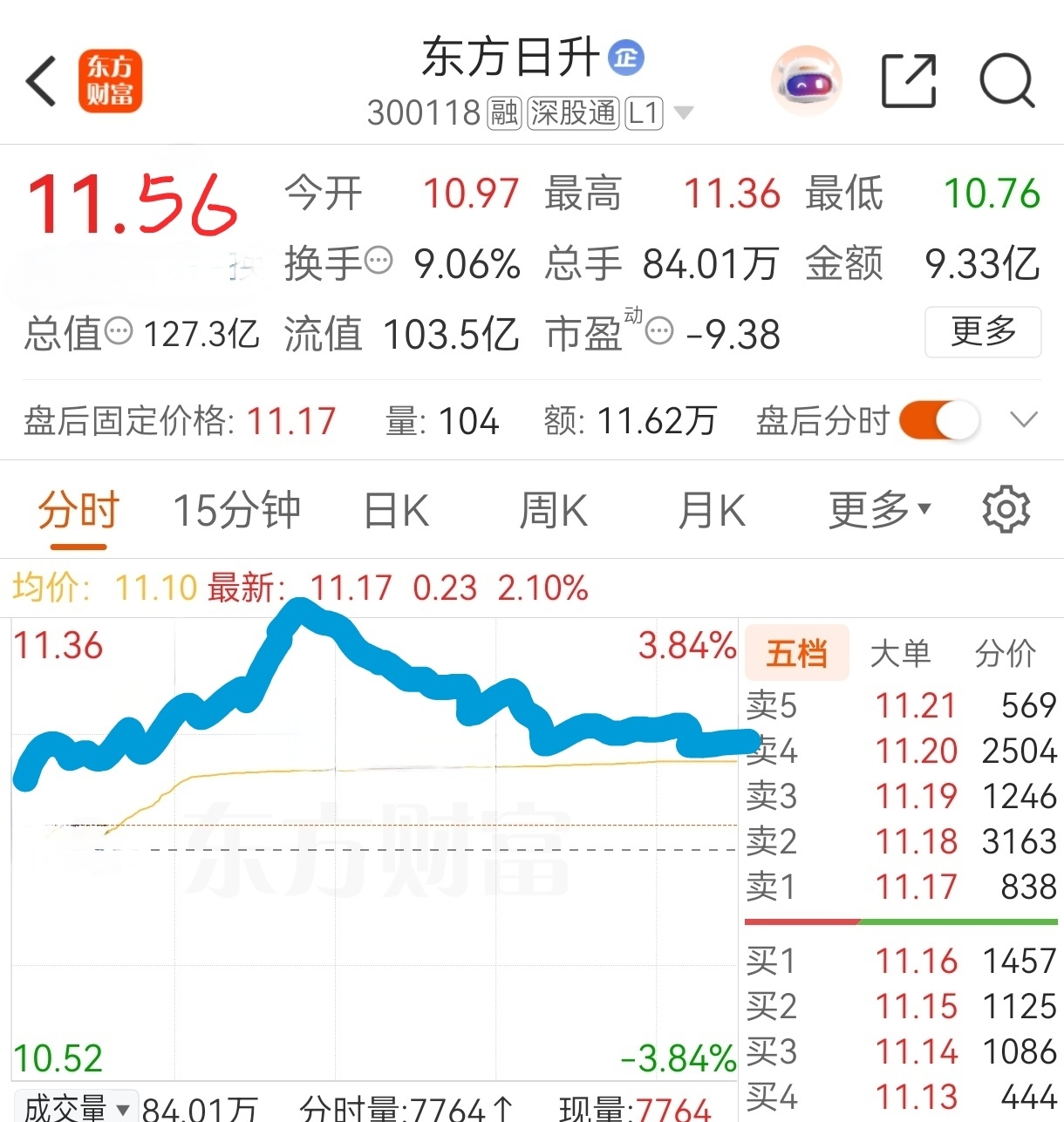 $东方日升(SZ300118)$ 根据日升的一贯的德性简单预判一下明天的走势,预计明天收盘价11.56元左右,最高冲到11.83元左右。(仅供娱乐参考,不构成投资意见)