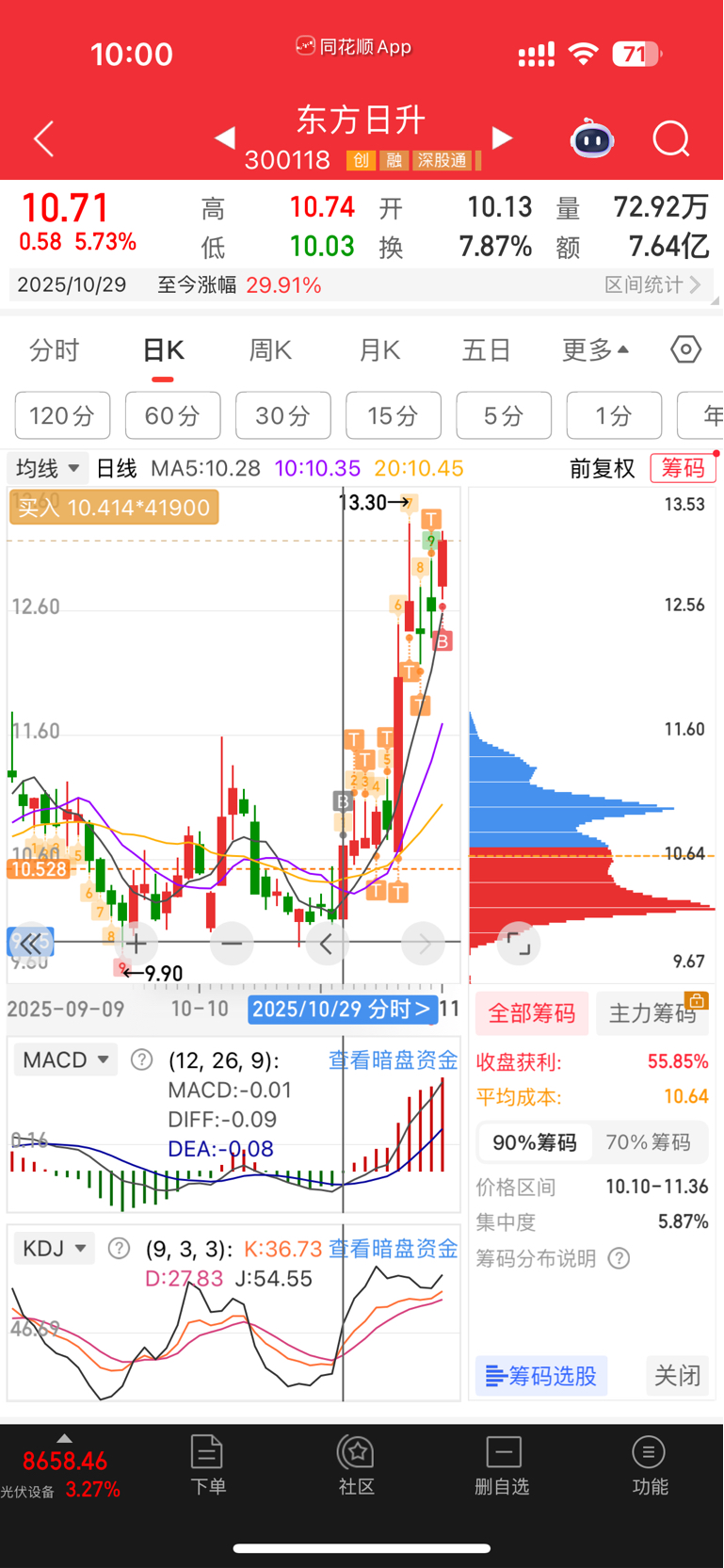 $东方日升(SZ300118)$ 这波从建仓到加仓以及日内t都做的可以,今天不收长阳就先撤退了,加油东方!