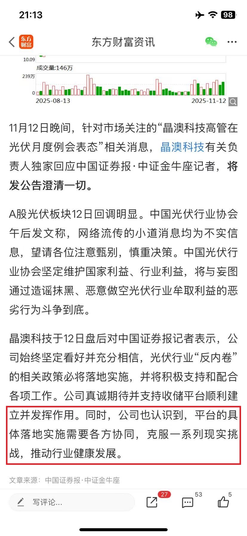 $东方日升(SZ300118)$ 晶澳科技高管称“收储”平台黄了