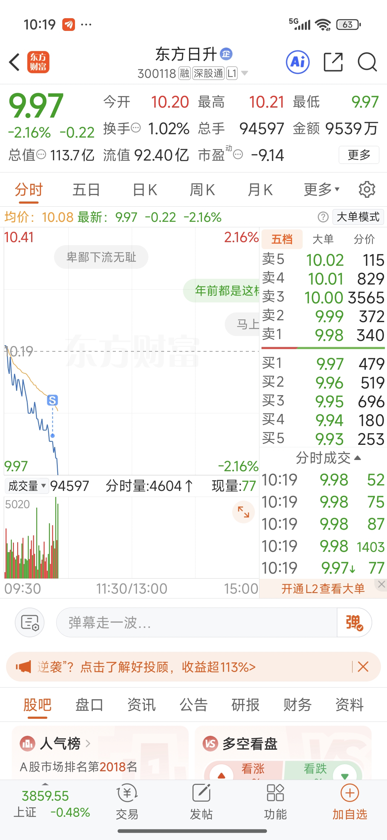 温馨提示: 1.根据《证券法》规定,禁止编造、传播虚假信息或者误导性信息,扰乱证券市场;2.用户在本社区发表的所有资料、言论等仅代表个人观点,与本网站立场无关,不对您构成任何投资建议。用户应基于自己的独立判断,自行决定证券投资并承担相应风险。《东方财富社区管理规定》