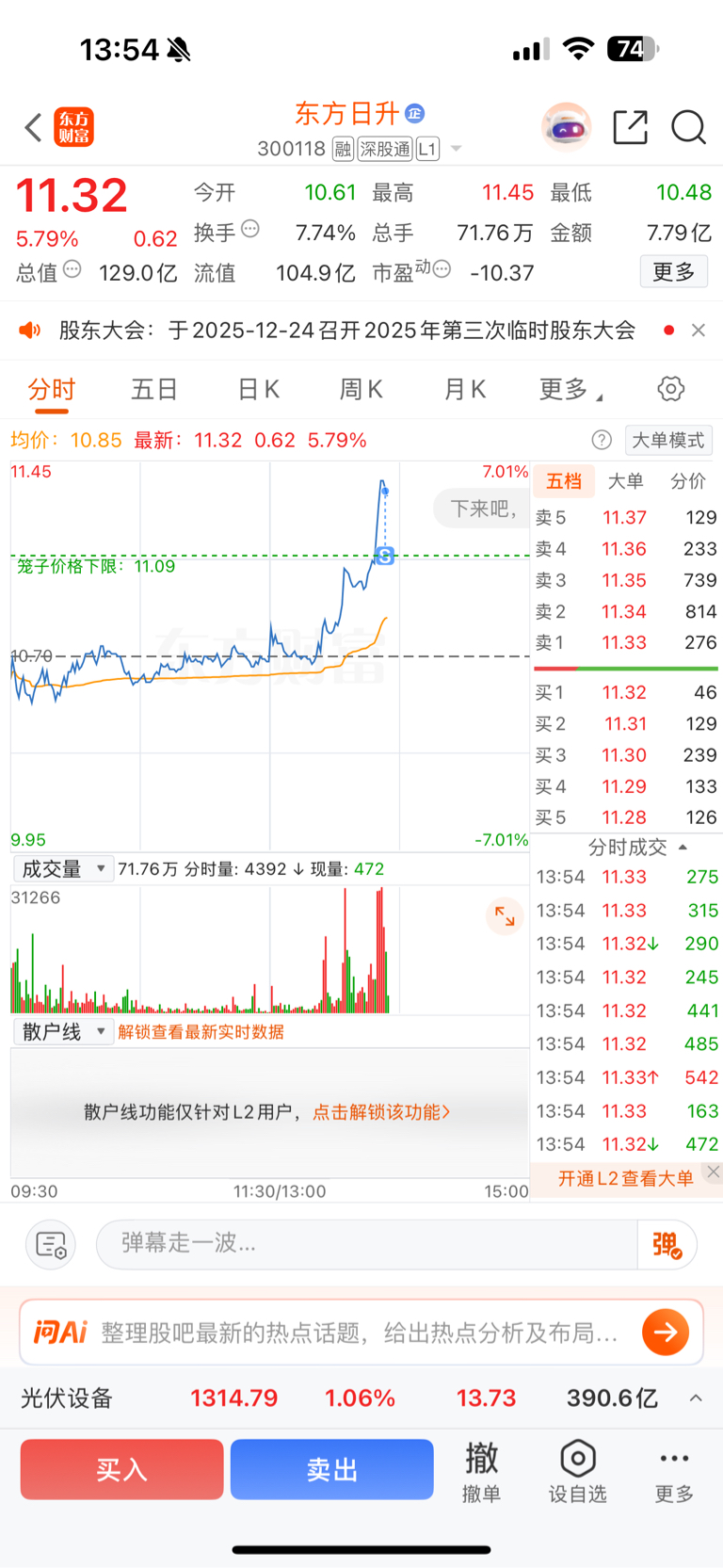 $东方日升(SZ300118)$ 可别让我拍断大腿,止盈了。跌回10.8就接。