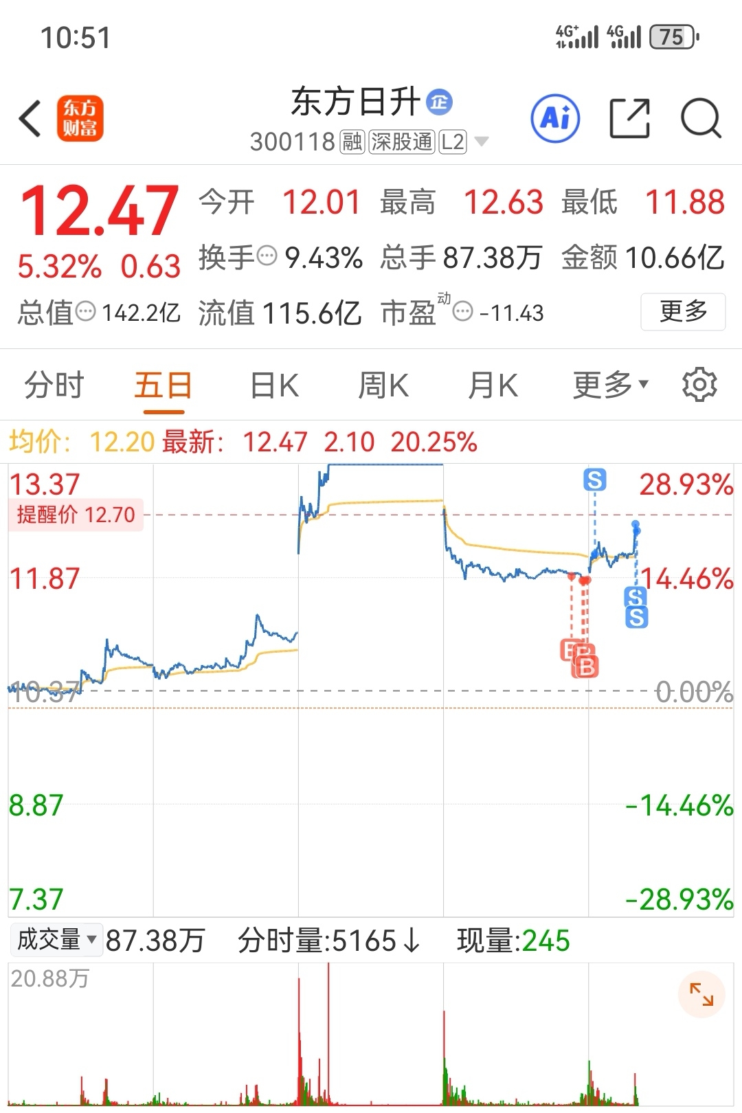 $东方日升(SZ300118)$ 把我洗走了,留了三层仓,给老桩一个突破前高的机会!