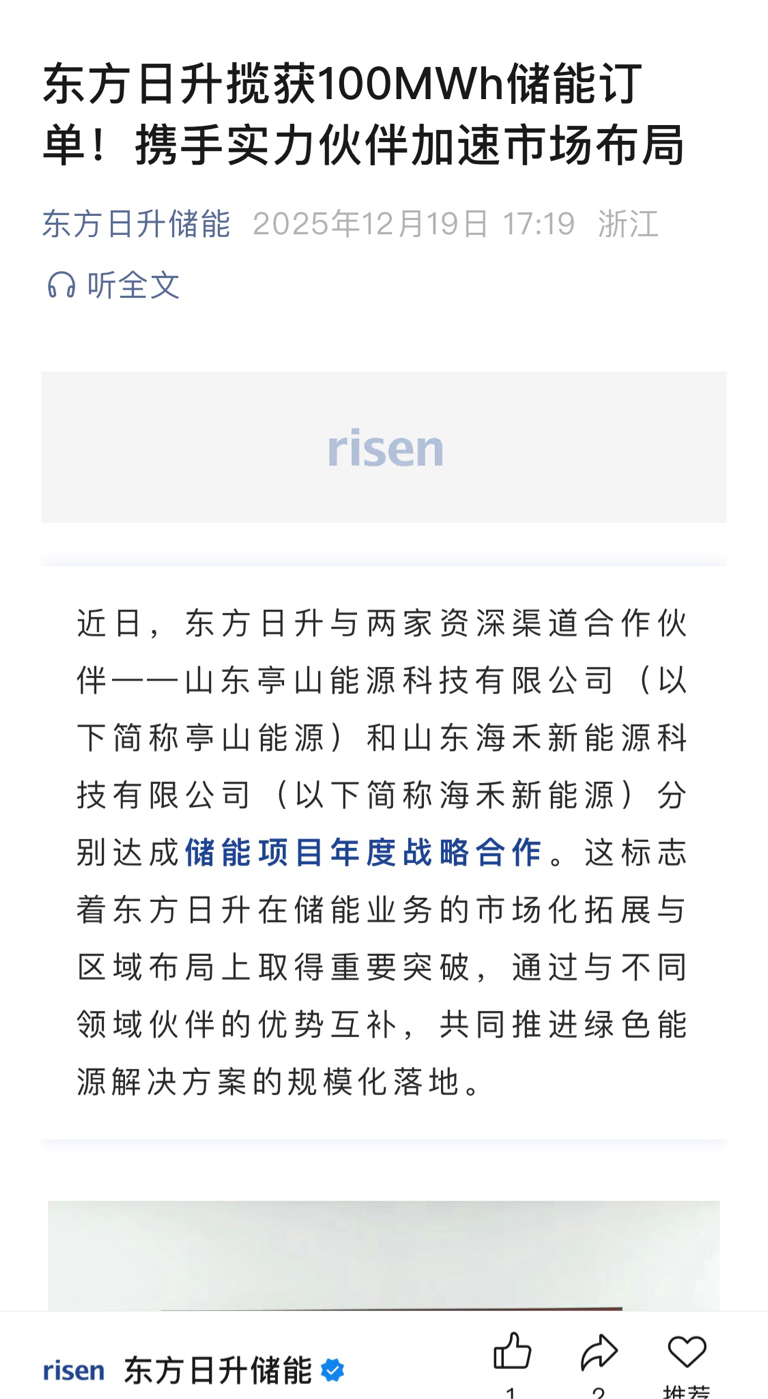 $东方日升(SZ300118)$ 储能发力,接单拉!