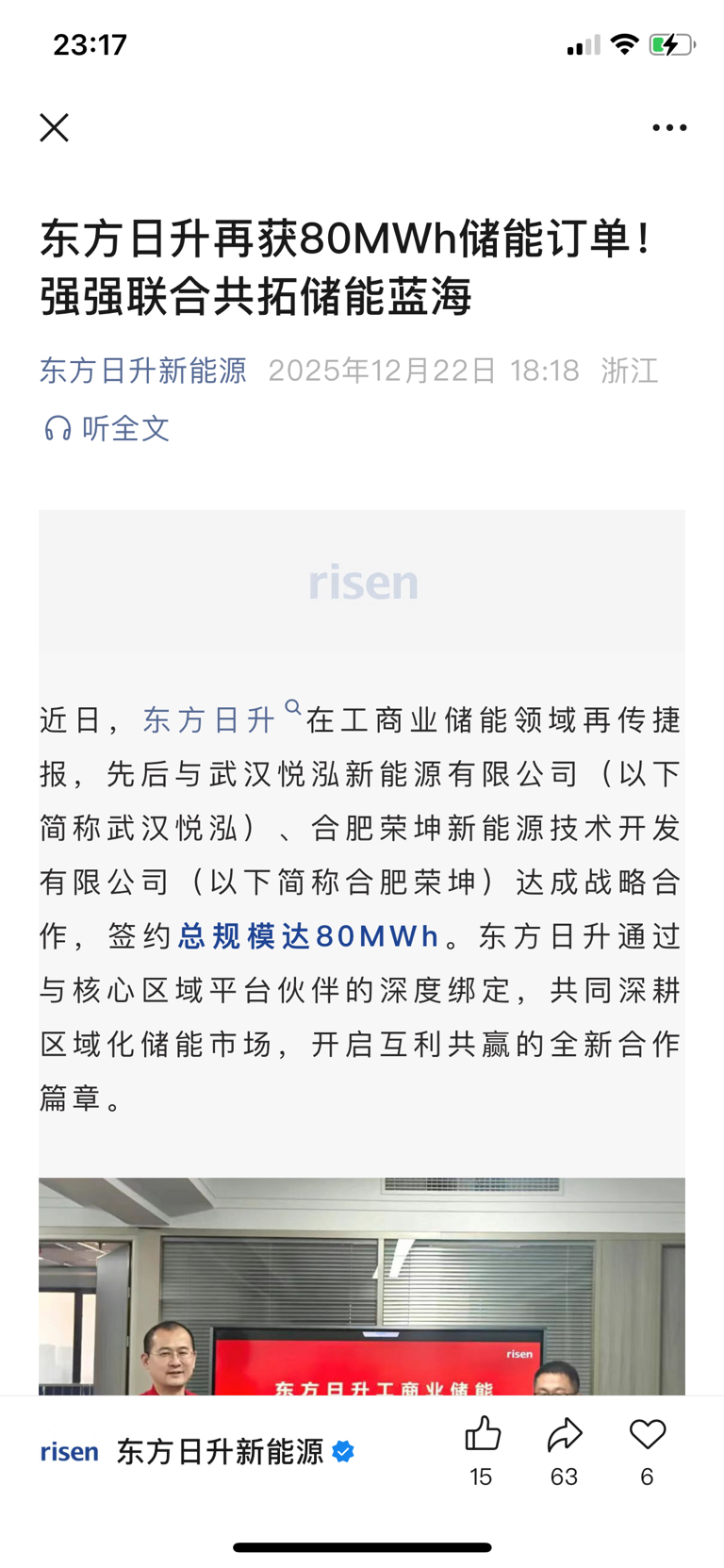 $东方日升(SZ300118)$ 储能订单