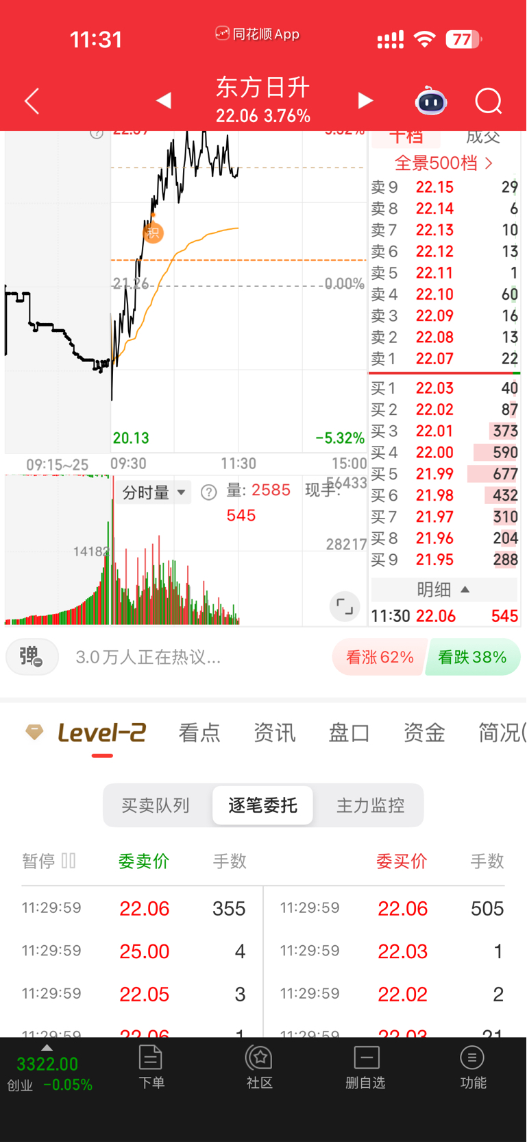 $东方日升(SZ300118)$ 量化早上爆买,22块以上猛砸做T,最后一个505手挂出来,秒被量化砸完,一手不多,一手不少。