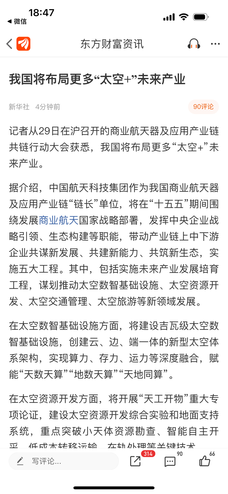 继续布局“太空”未来产业