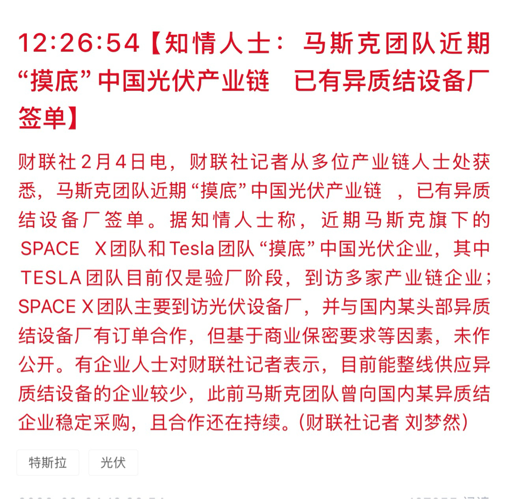 这票感觉还是挺不错的,已有异质结交付成功的北美欧洲客户,这大概率是马斯克火箭公司